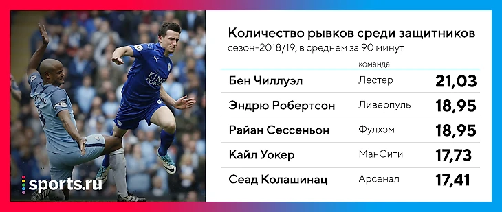 Во всех командах топ-6 Англии лучшими по отборам становятся пара крайков и центральные полузащитники. Исключение – «Арсенал», который играет в три центральных; фулбеки там выполняют другие функции.