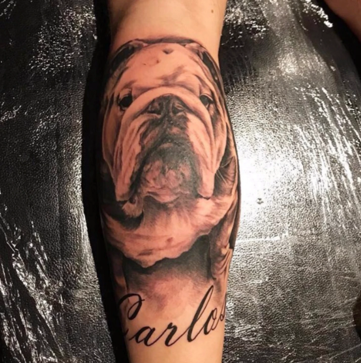 Кроме татуировок Джокера, у Каммингса есть куча других. Например, с любимым псом по кличке Карлос.