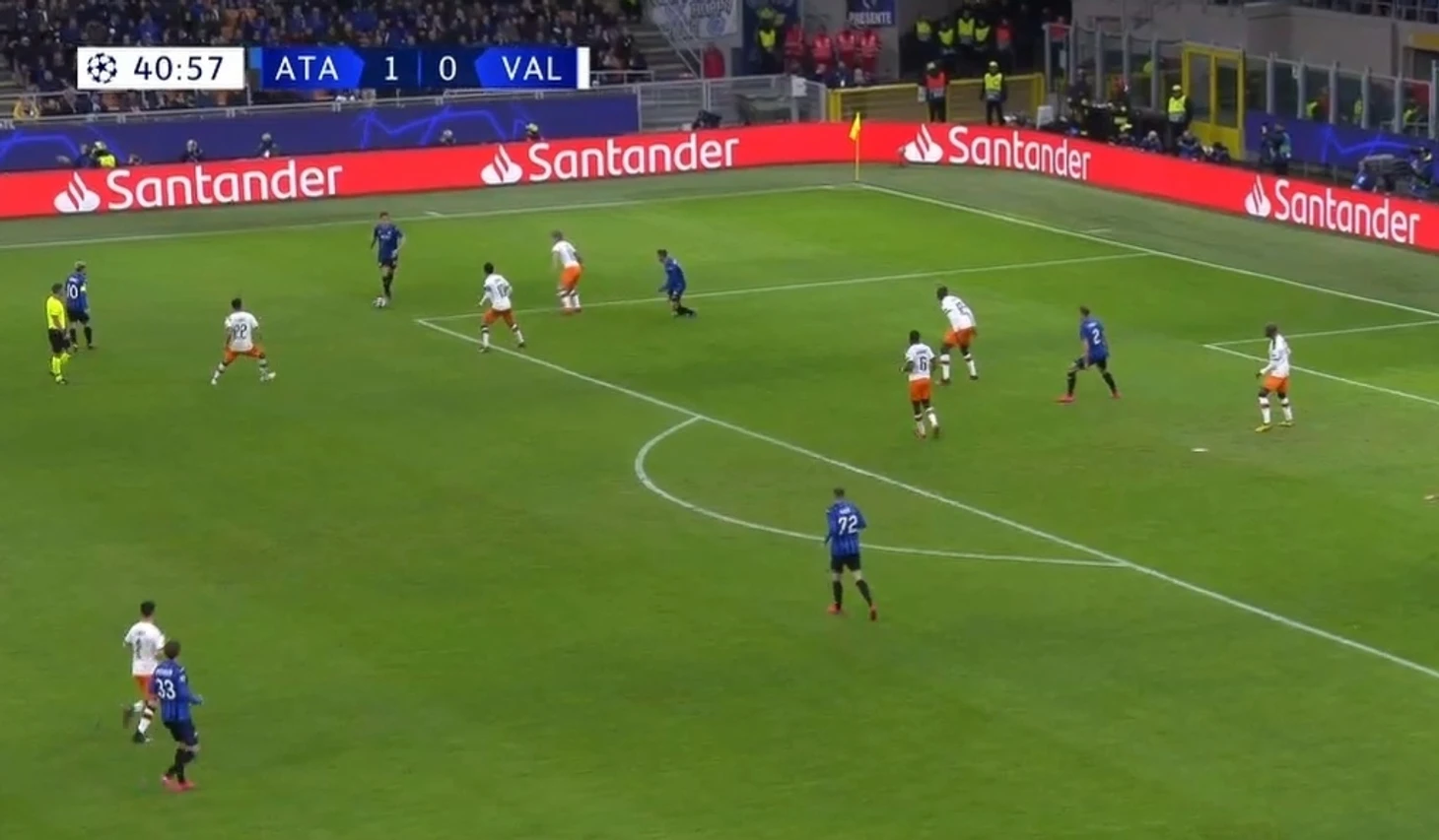 Рядом с арбитром Папу оказывался только во время долгих позиционных атак «Аталанты». В быстрых атаках Гомес стартовал ближе к левому флангу.