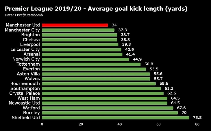 Вратарь «Юнайтед» в три раза реже выносит мяч лонгболлами, предпочитая отдать точную короткую передачу защитнику.