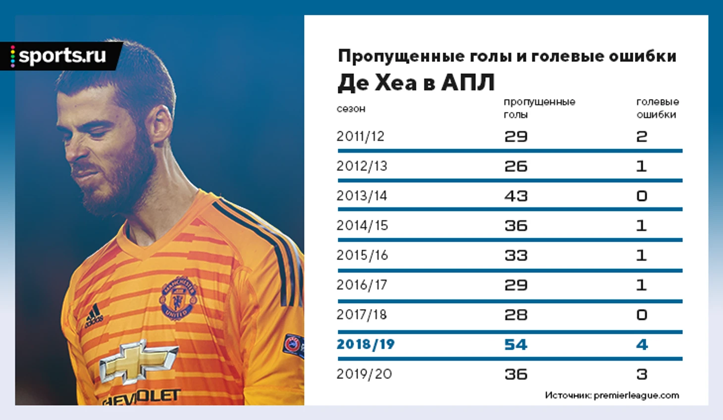 В марте Давид привез еще хуже: в матче с «Эвертоном» (1:1) Де Хеа неудачно ввел мяч в игру, попав в ногу Кэлверт-Льюина. Мяч отлетел в ворота.
