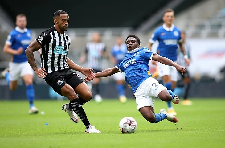 Оба пенальти против «Ньюкасла» и «МЮ» заработал Тарик Лэмпти. Защитники следили за партнерами англичанина, поэтому крошечного вингбека (рост Тарика отличается в разных источниках, мы склонны верить The Athletic – у них 1,63) сносили Сен-Максимен и Бруну.