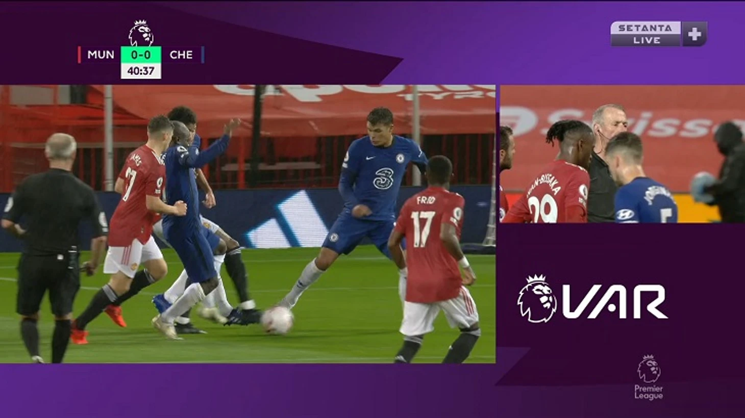 Видеоассистенты внимательно рассматривали еще один эпизод: через несколько минут после инцидента с Магуайром Рэшфорд влетел в штрафную, а сзади в ахилл ему въехал Канте.
