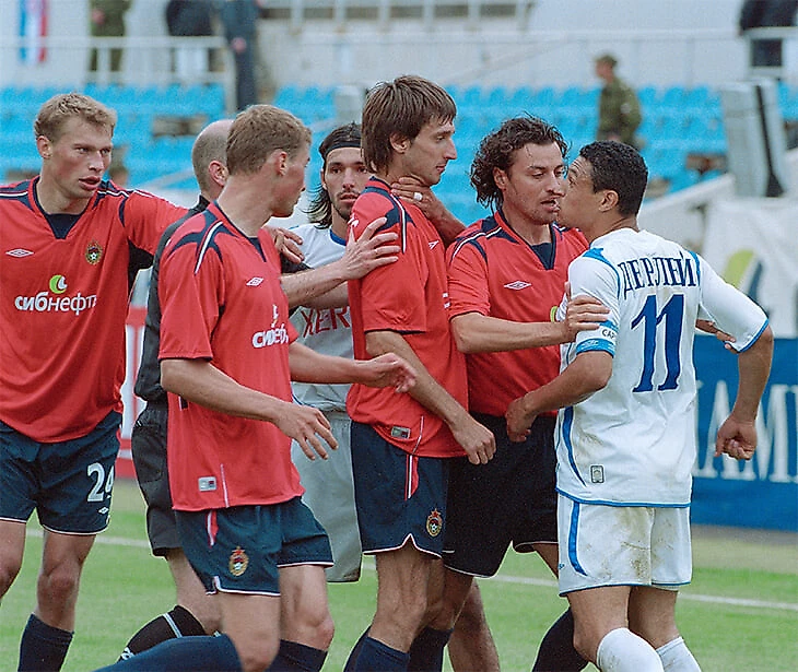 В «Лейрии» Моуринью забивал Дерлей – будущая легенда португальского десанта «Динамо» (кадров с ним из «Лейрии» мы не нашли, поэтому насладимся русским этапом).