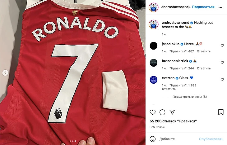После матча Таунсенд в интервью объяснил, что не троллил Криштиану. Наоборот, празднование – способ выразить восхищение кумиром, с которым впервые вышел на одно поле.