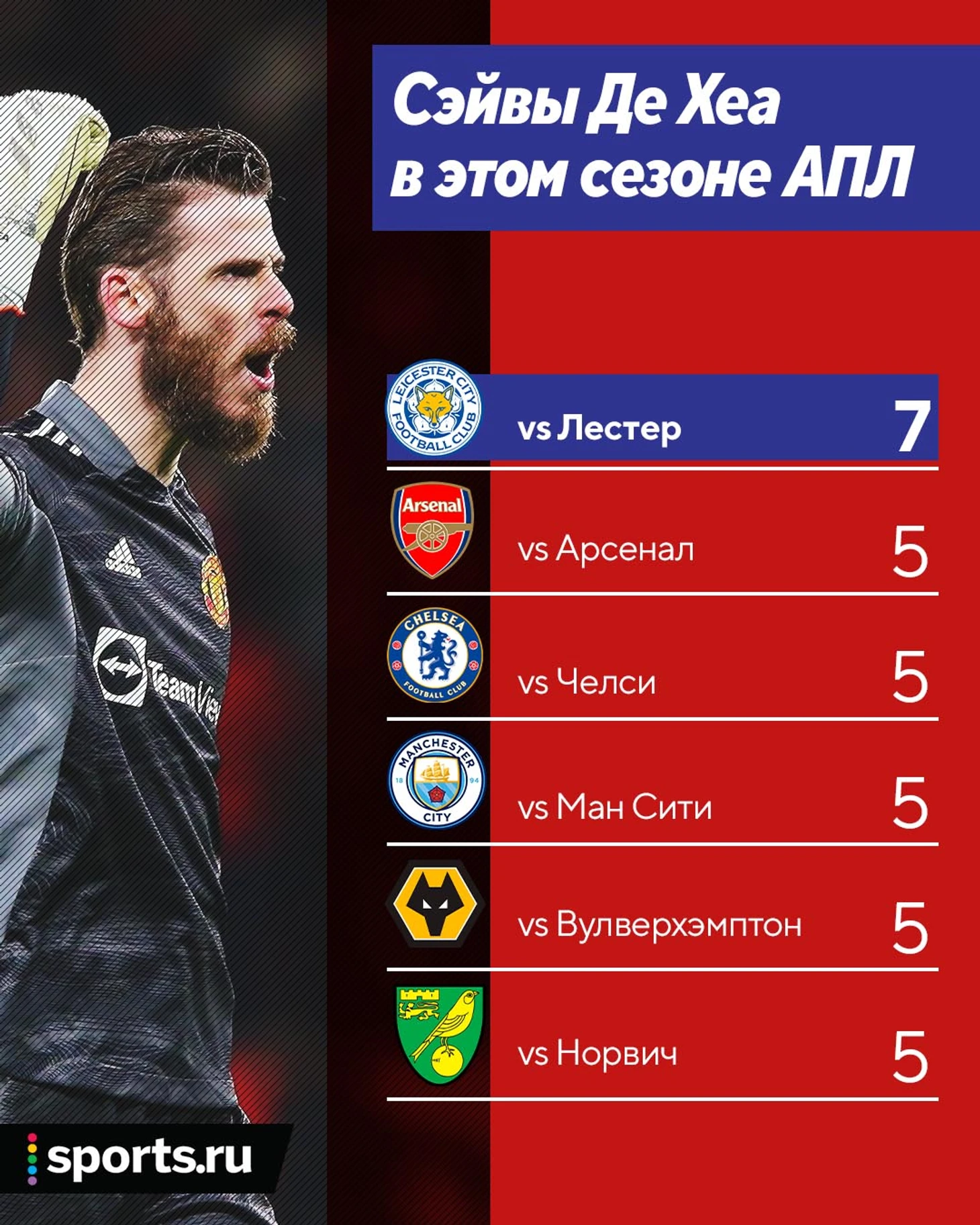 Де Хеа едва ли ворвется в гонку за «Золотую перчатку» АПЛ (там идет битва между Алиссоном, Эдерсоном и Менди), но точно будет одним из лучших в этом сезоне по количеству отраженных ударов – сейчас у Де Хеа 53 сэйва в этом сезоне АПЛ, у лидирующих Крула и Сара – 54.