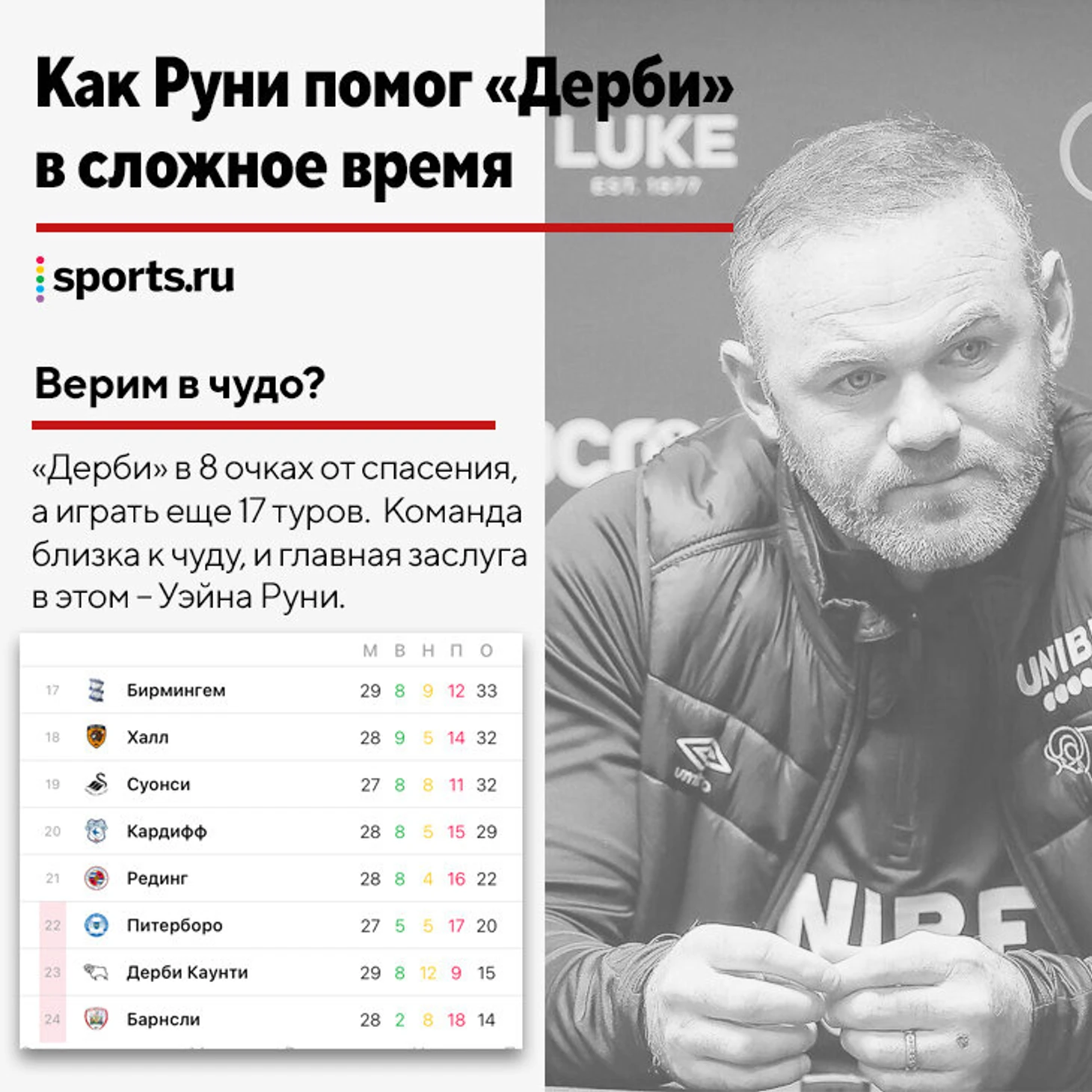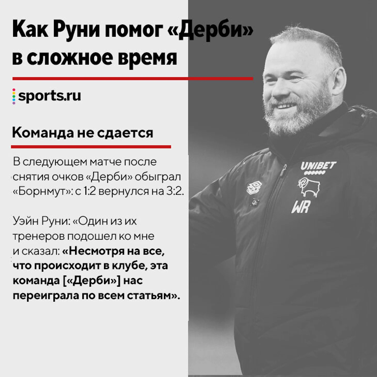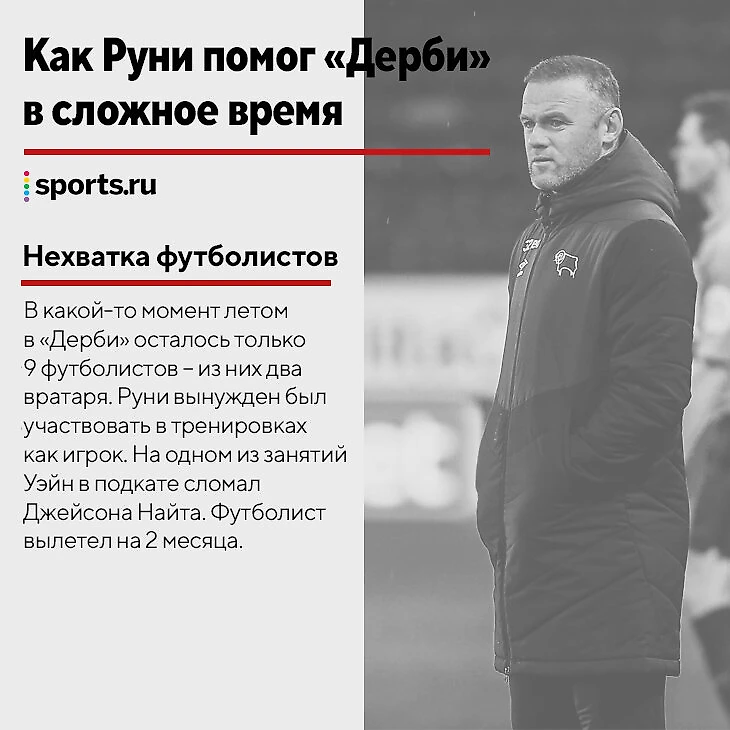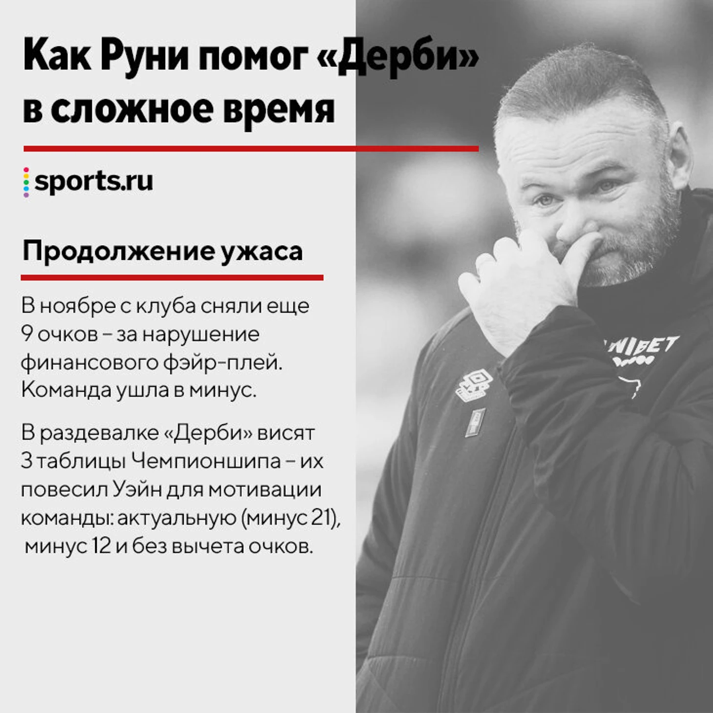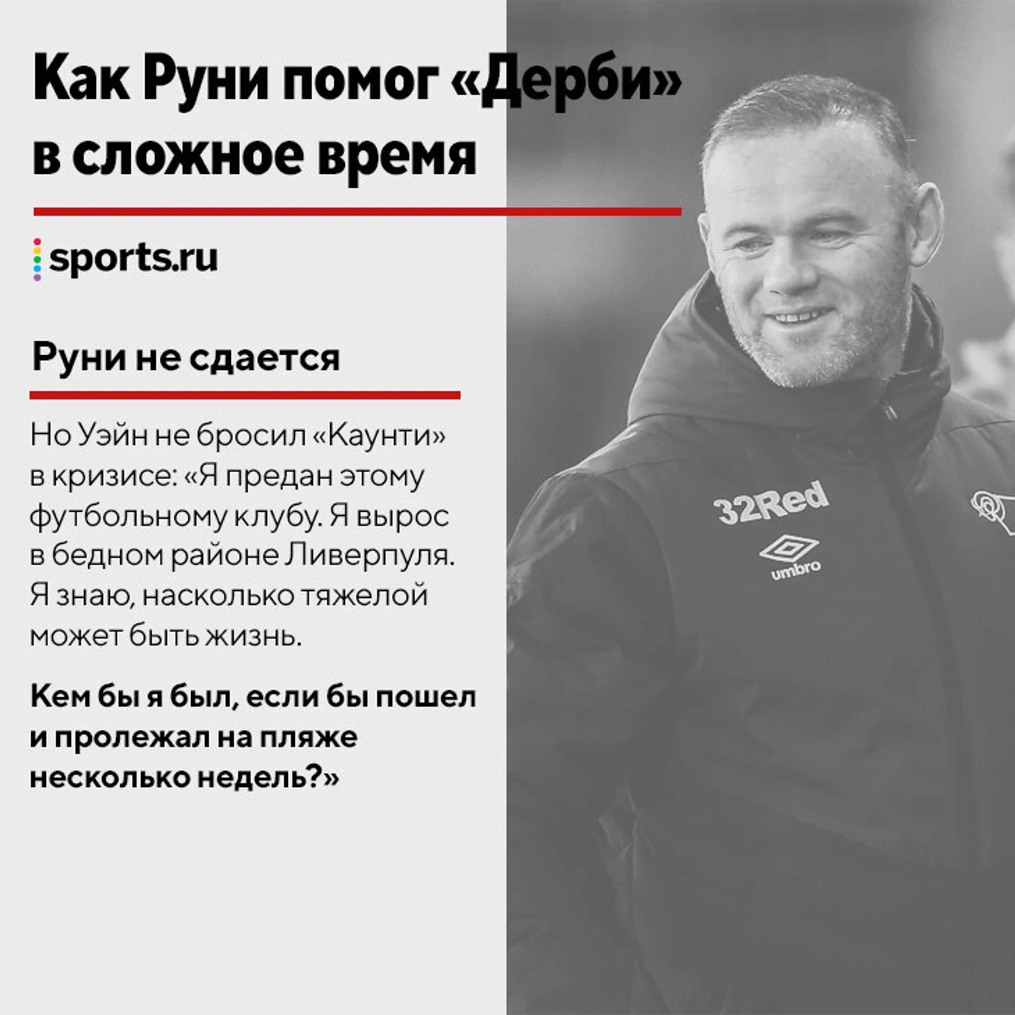 Если вы вдруг потеряли Уэйна Руни, то рассказываем: он в полном порядке и по-прежнему рулит «Дерби Каунти», несмотря на все проблемы клуба: трансферное эмбарго, долги и вычет очков (-21!).