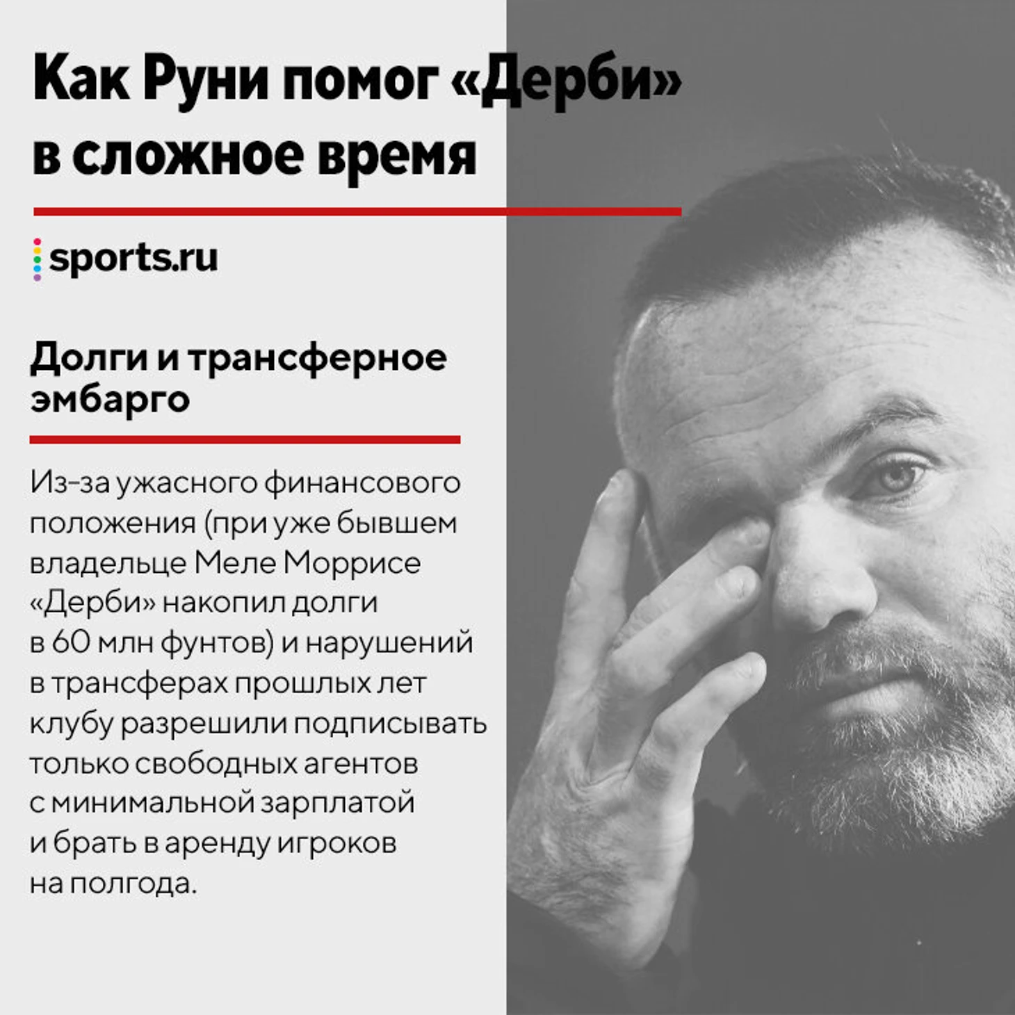 Руни спасает «Дерби»: отказался от работы в АПЛ, оплачивает нужды команды и не сдается даже после снятия 21 очка