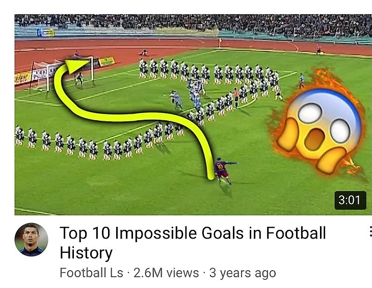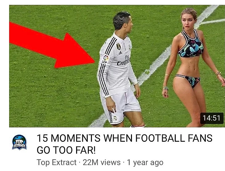 Прошло 17 лет, количество футбольного контента увеличилось в миллионы раз, а потому блогерам нужно постоянно изобретать cпособы привлечь внимание к роликам. Самый популярный – максимально кликбейтная обложка. Но иногда авторы заходят слишком далеко. Или нет?