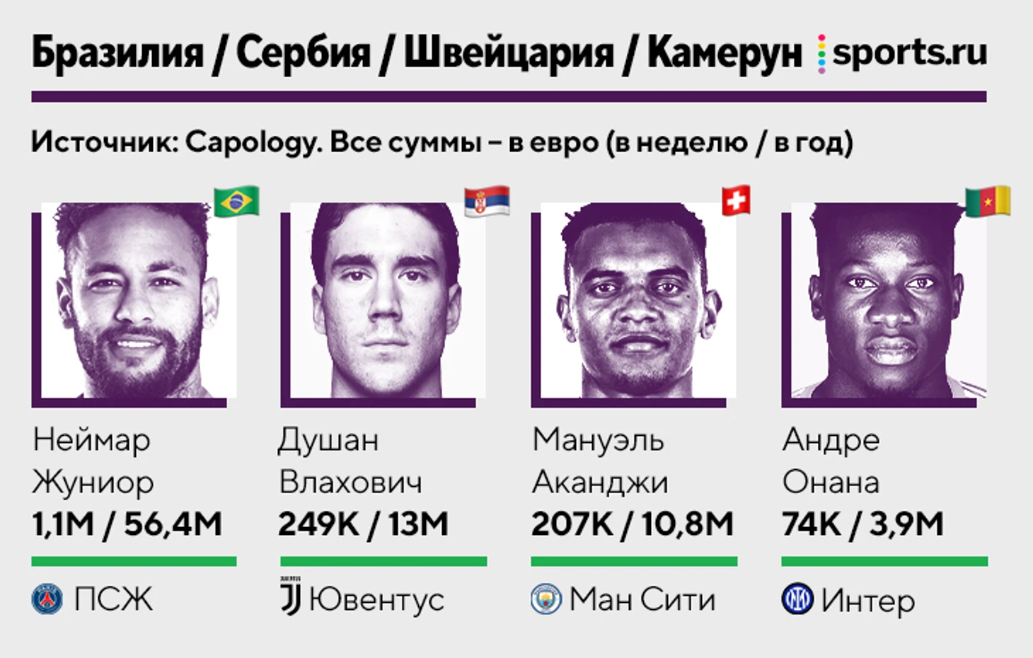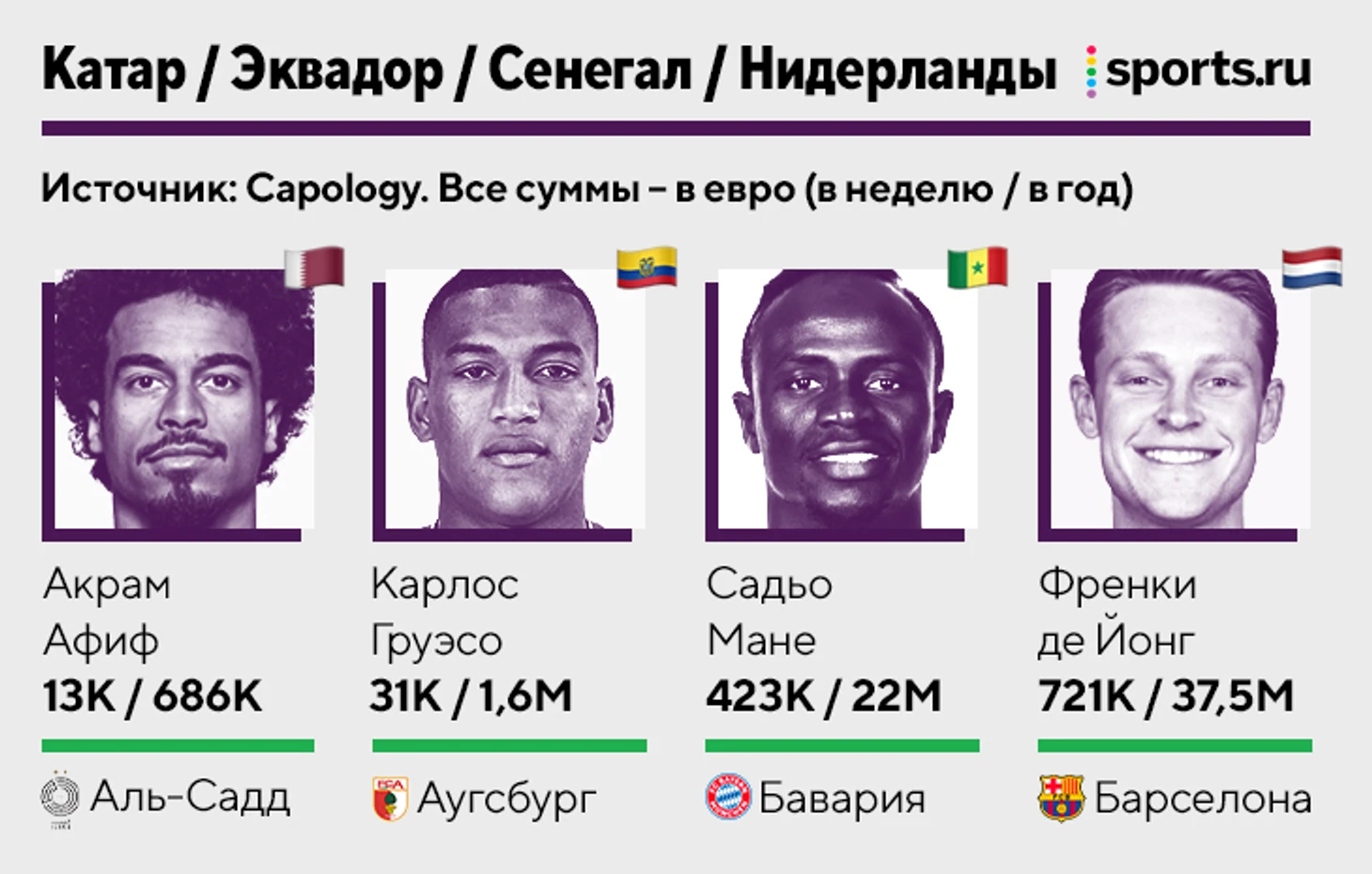 Продолжаем знакомство со звездами группового этапа ЧМ-2022. Мы уже провели мини-анализ тренеров (узнали, из каких они стран и какие сборные тренируют иностранцы). Теперь посмотрим на зарплаты игроков. Кто получает больше всего в каждой группе? Как выглядит общий топ зарплат? Важная деталь на старте: все суммы – до уплаты налогов.