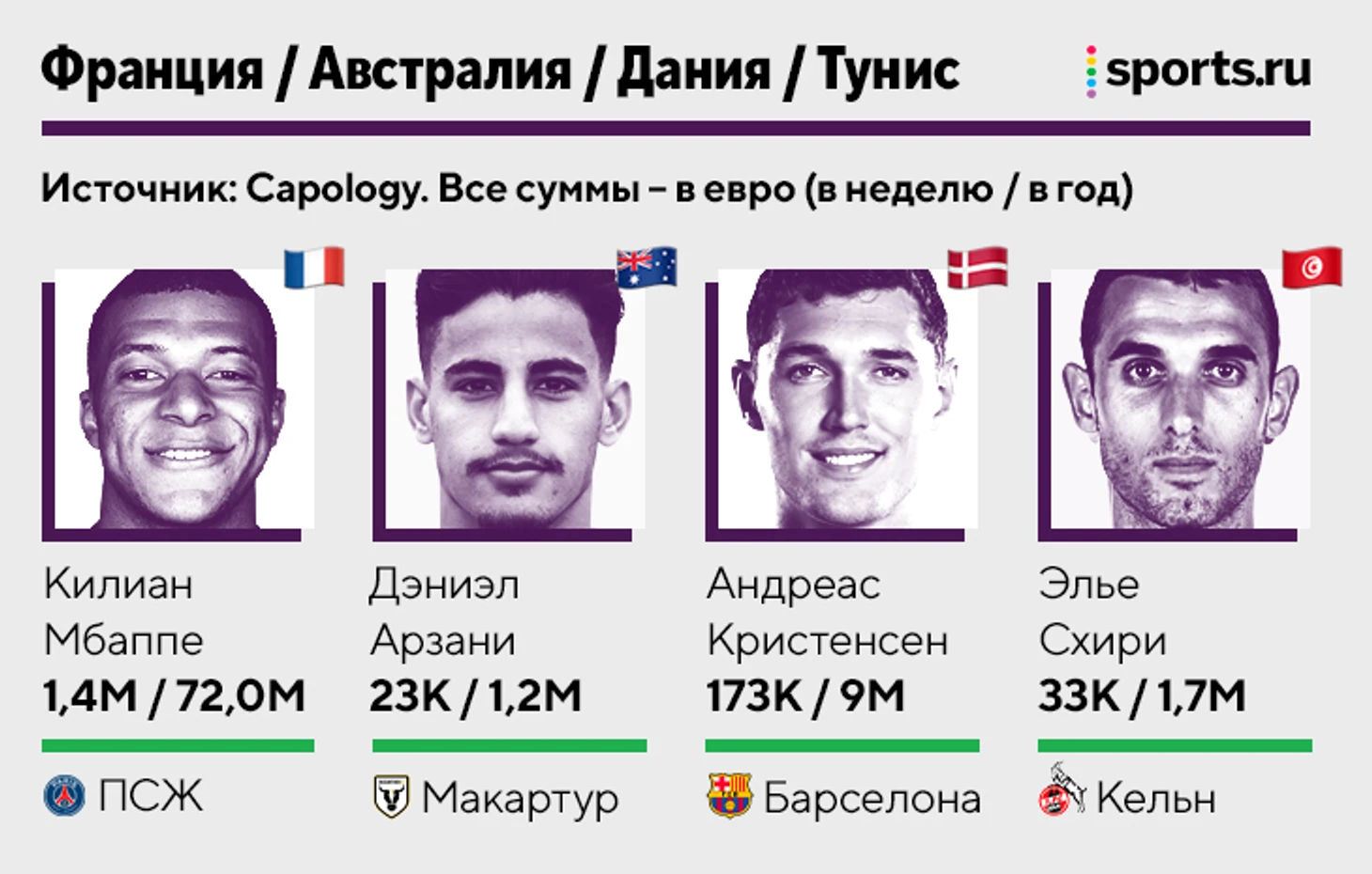 • Годовой доход Мбаппе это: - 60 годовых зарплат Арзани - 42 годовых зарплаты Схири - 9 годовых зарплат Кристенсена