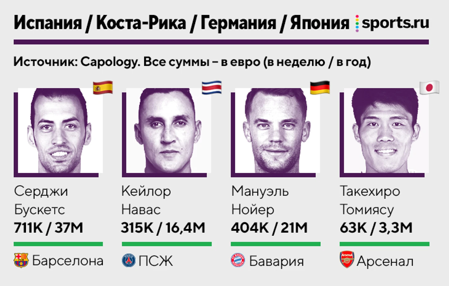 • В топе больше всего игроков «Баварии» – 5 (Мане, Нойер, Мюллер, Сане, Киммих). У «Реала» и «Барсы» – по 4, у «ПСЖ» – 3, у «МЮ» и «Сити» – по 2.