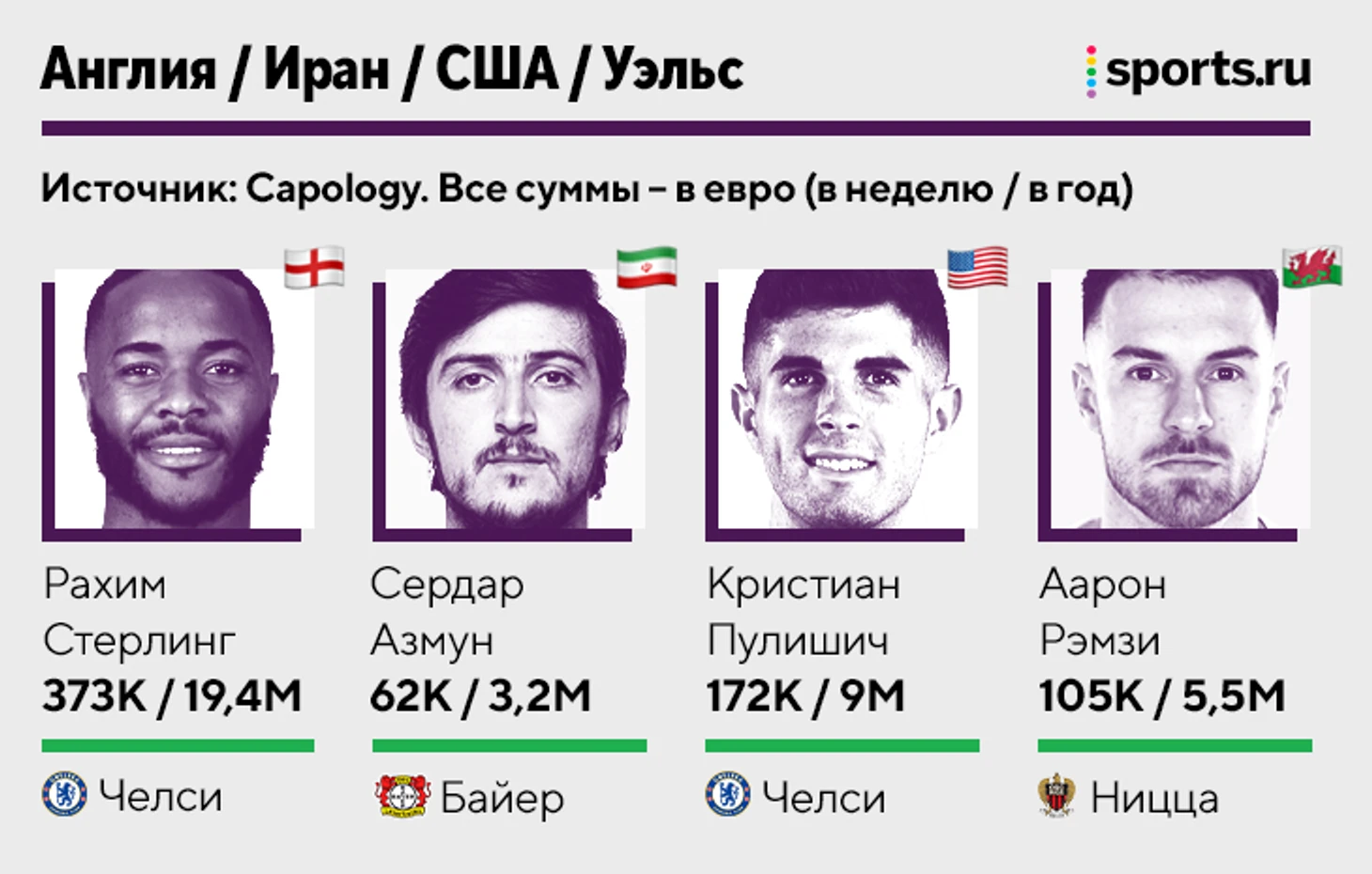 • Самый зарабатывающий англичанин – Джейдон Санчо (20,9 млн евро в год), но он не поехал на ЧМ.