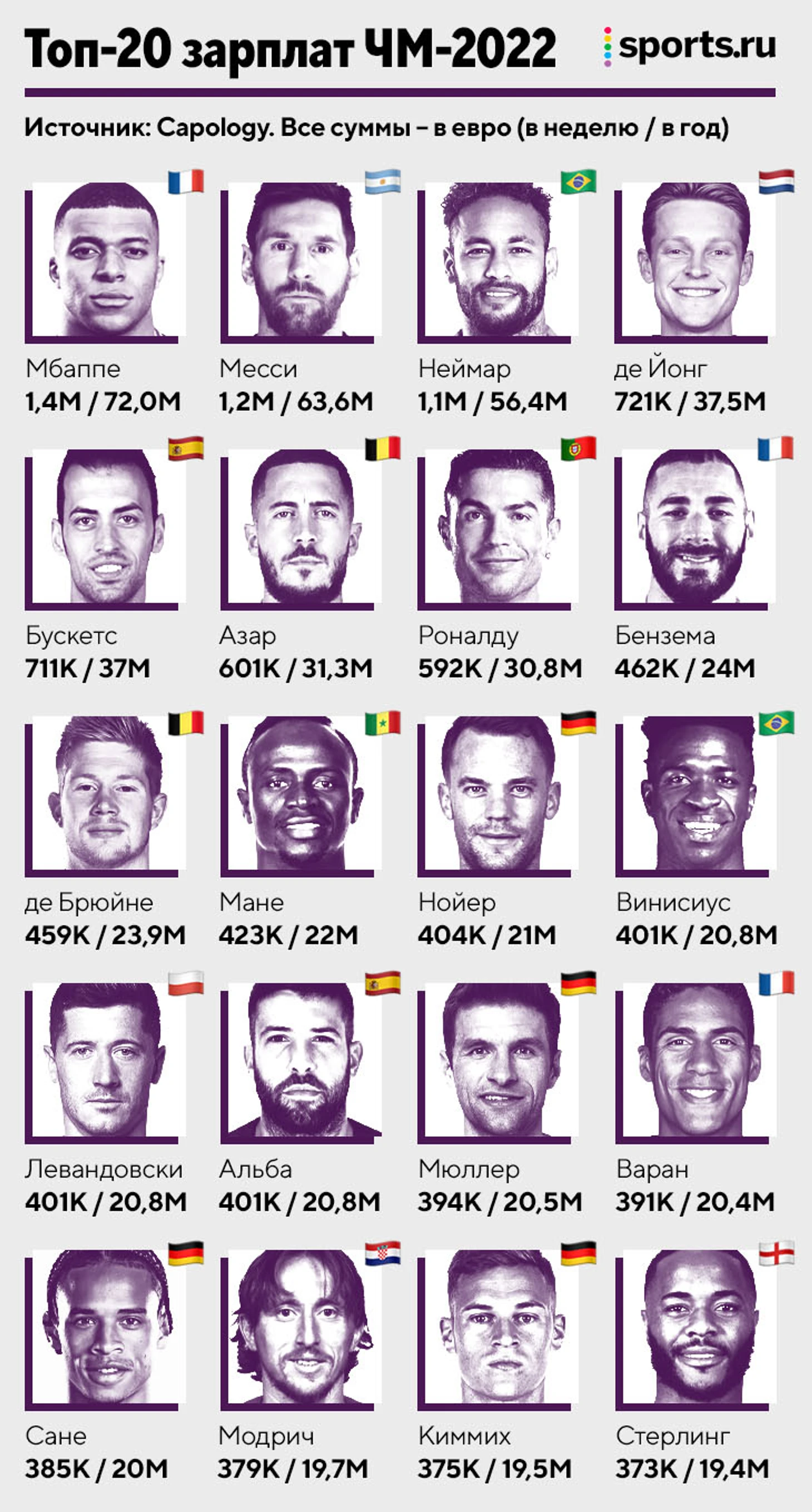 Самые большие зарплаты ЧМ-2022: трио из «ПСЖ» в лидерах, Бускетс и Азар выше Роналду