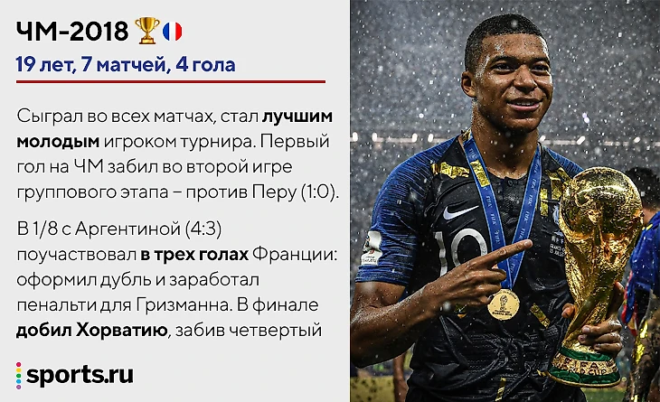 Всего на чемпионатах мира Килиан забил 7 мячей: уже обошел Мишеля Платини, Зинедина Зидана (у них по 5) и даже Тьерри Анри (6). Из французов впереди только Жюст Фонтен (13), но Килиану-то всего 23.