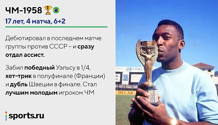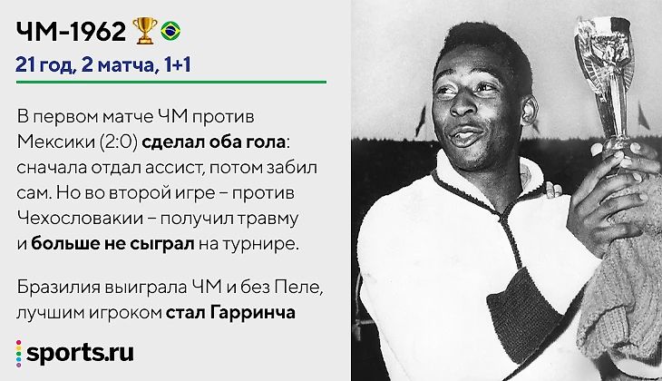• Разрыв в ассистах кажется недостижимым, но есть оговорка: 6 голевых (данные Opta) Пеле оформил на ЧМ-1970 уже в зрелом возрасте.