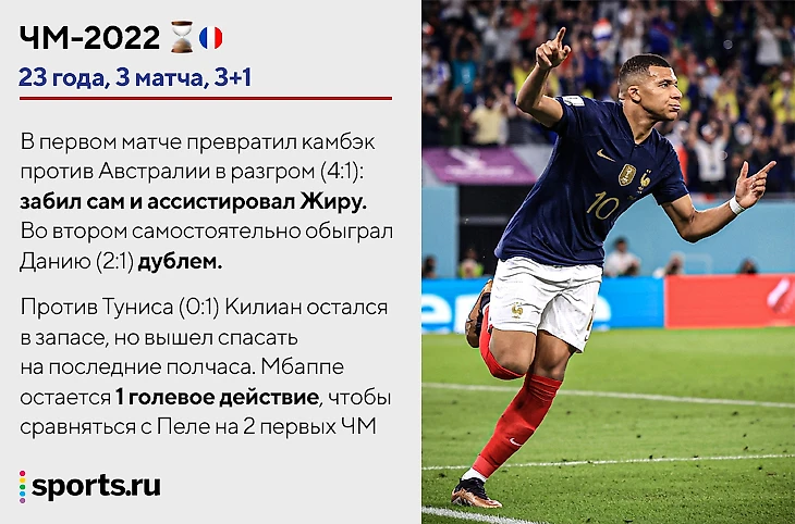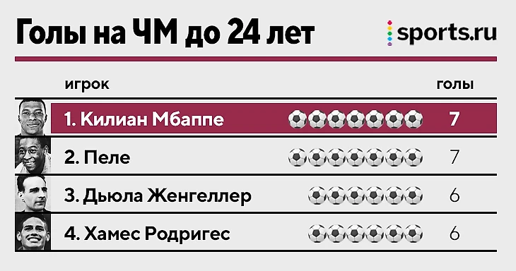 Если взять голы на ЧМ до 24, то Мбаппе в топе − столько же у Пеле, больше ни у кого.