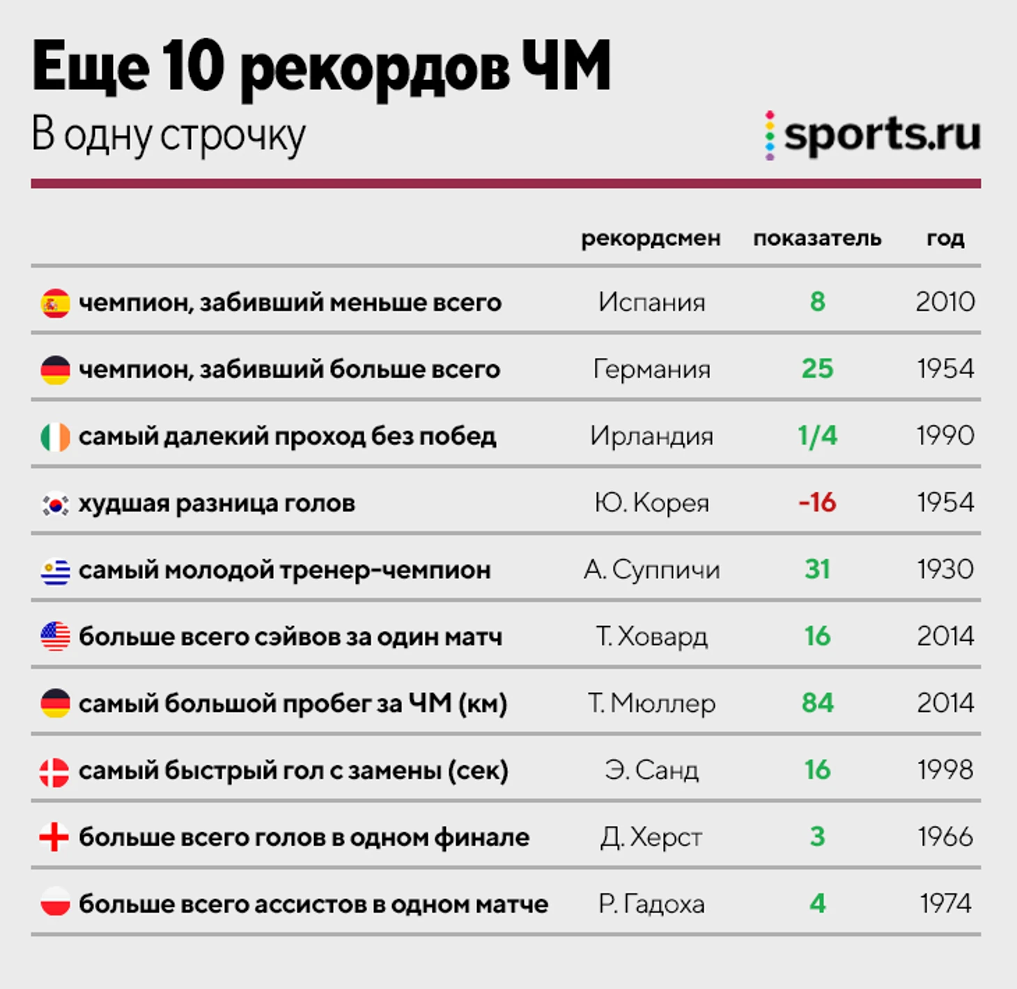 Все рекорды ЧМ: 10 голов Венгрии в одном матче, 6 ассистов Пеле, 84 км Мюллера