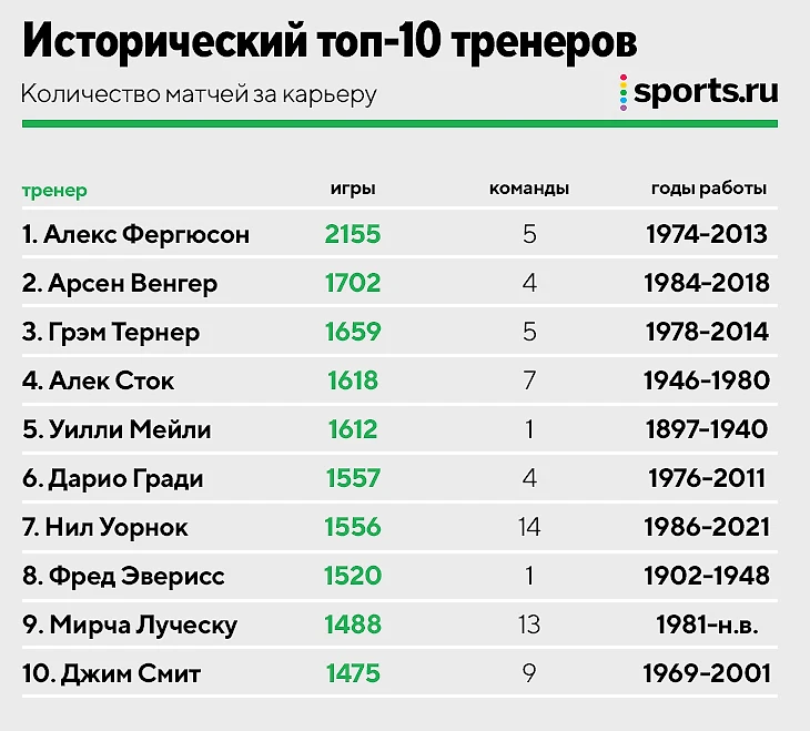• Скоро в топе действующих появится 13-й представитель: у Лучано Спаллетти 996 игр. А вот Гвардиоле еще далеко − у Пепа-тренера 833 матча.