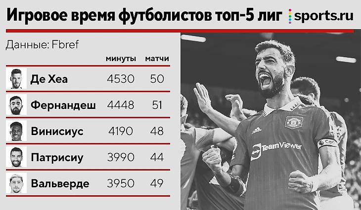 Португалец не просто избегает травм − он еще и играет чуть ли не больше всех в топ-5 лиг.