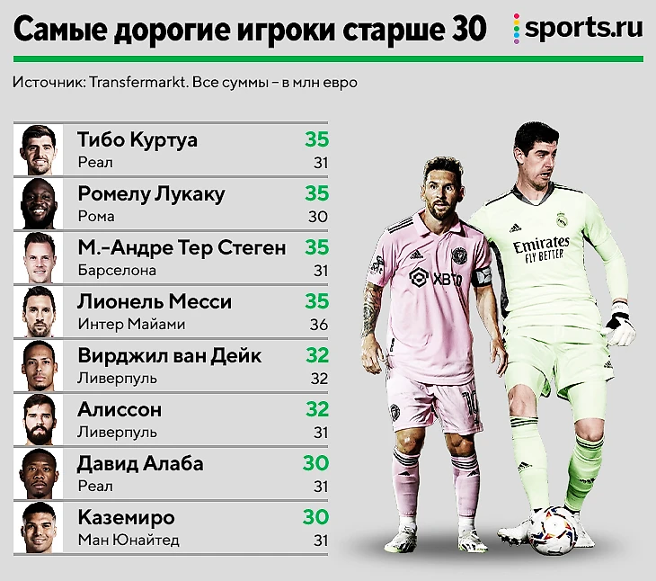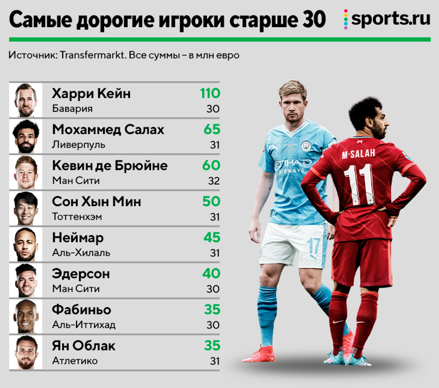 Кейн – единственный футболист 30+, оцененный в более чем 100 млн евро.