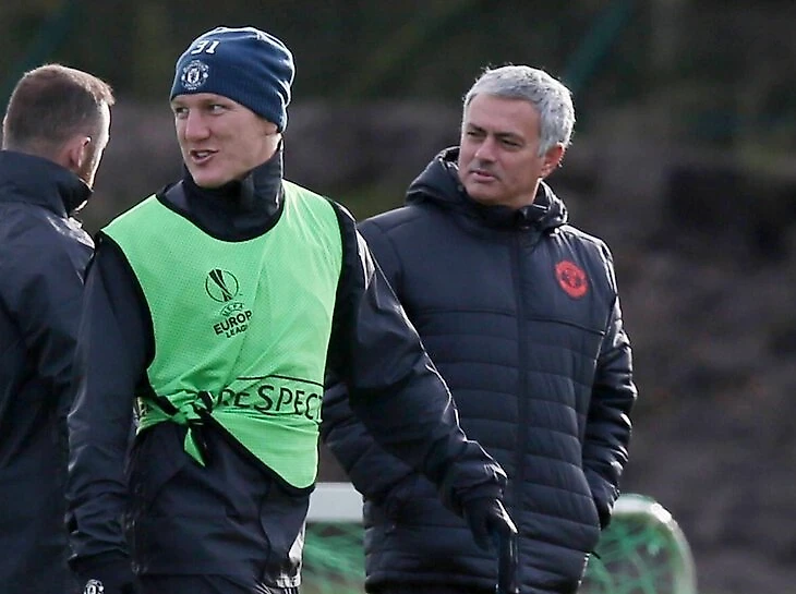 Сообщалось, что Луи ван Гал закрывал глаза на отстраненность игрока от команды и ее интересов – единственным условием голландца было то, что Швайнштайгер должен был возвращаться в Манчестер в дни матчей. Моуринью, получив информацию об отношении Бастиана к клубу, посчитал подобное поведение недопустимым и отстранил игрока от тренировок с основным составом. Жозе на вопросы об отстранении отвечал сухо: «Такое случается в любом клубе мира. Тренер определяет состав, вот и все». «МЮ» планировал отпустить Швайнштайгера бесплатно, чтобы сэкономить на зарплате, но в итоге сезон-2016/17 немец начал в «Юнайтед». «Не говорю, что ему будет невозможно вернуться в состав, но сделать это будет очень трудно. У нас и так есть пять игроков на две позиции – Погба, Феллайни, Кэррик, Шнайдерлин и Эррера», – объяснял Моур.