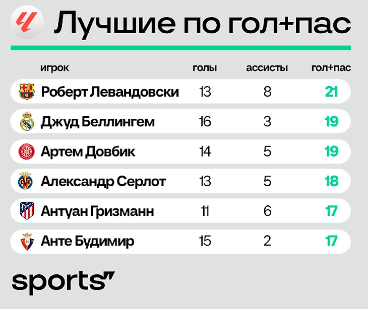 ● Февральская форма Левандовского (4 гола в 3 матчах) и дисквалификация Джуда помогла поляку забраться на первое место. В прошлом сезоне Роберт выбил в чемпионате 23+7.