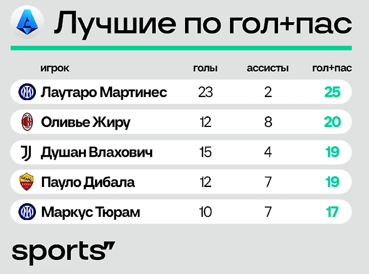 ● Главное достояние итальянского топа – 37-летний Оливье Жиру (лучший ассистент лиги). Еще один герой – подписанный бесплатно Маркус Тюрам.