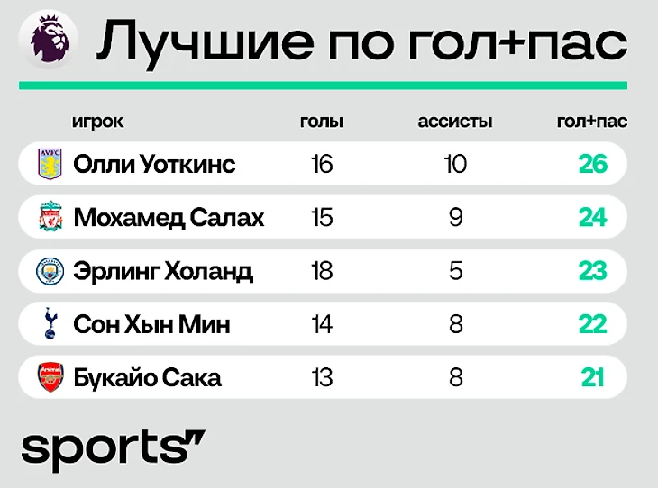 ● Неожиданный лидер в АПЛ – Олли Уоткинс. Кстати, форвард «Виллы» единственный футболист нашего топа с двузначными показателями.