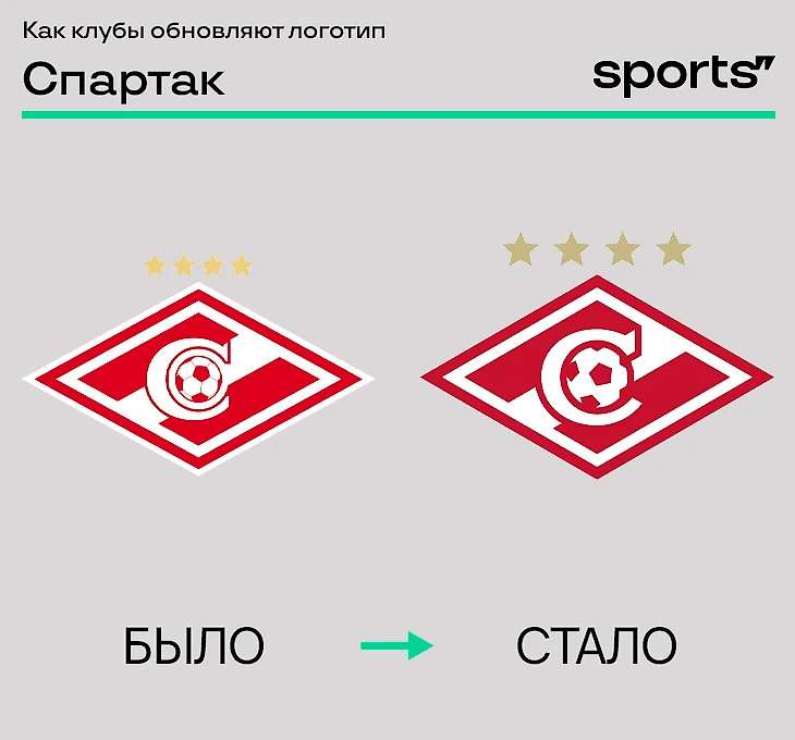 «Спартак» обновил эмблему к 100-летию клуба. Редизайном занималась студия спортивного дизайна Quberten. Ключевые детали апдейта – четкая геометрия, укрупнение и упрощение графики, единый масштаб элементов и унифицированные толщины элементов.