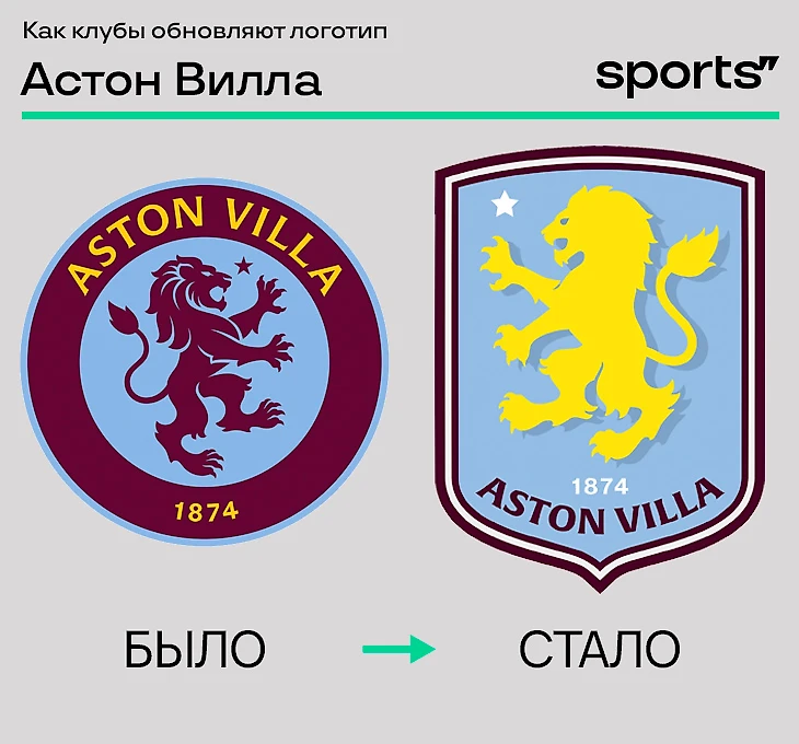 «Астон Вилла» освежила эмблему в честь 150-летия. Откатились к традиционному щиту со львом. Предыдущий вариант, выбранный путем голосования фанатов (держатели абонементов и члены официального фан-сообщества), продержался всего сезон.