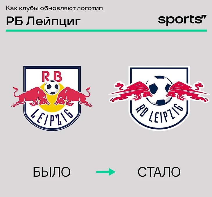 Тогда «РБ Лейпциг» согласился изменить дизайн и представил нынешнюю эмблему. Она значительно отличалась от других футбольных команд «Ред Булл». Желтое солнце заменили на футбольный мяч, а инициалы «RasenBallsport» перенесли в нижнюю часть, убрав красный цвет.