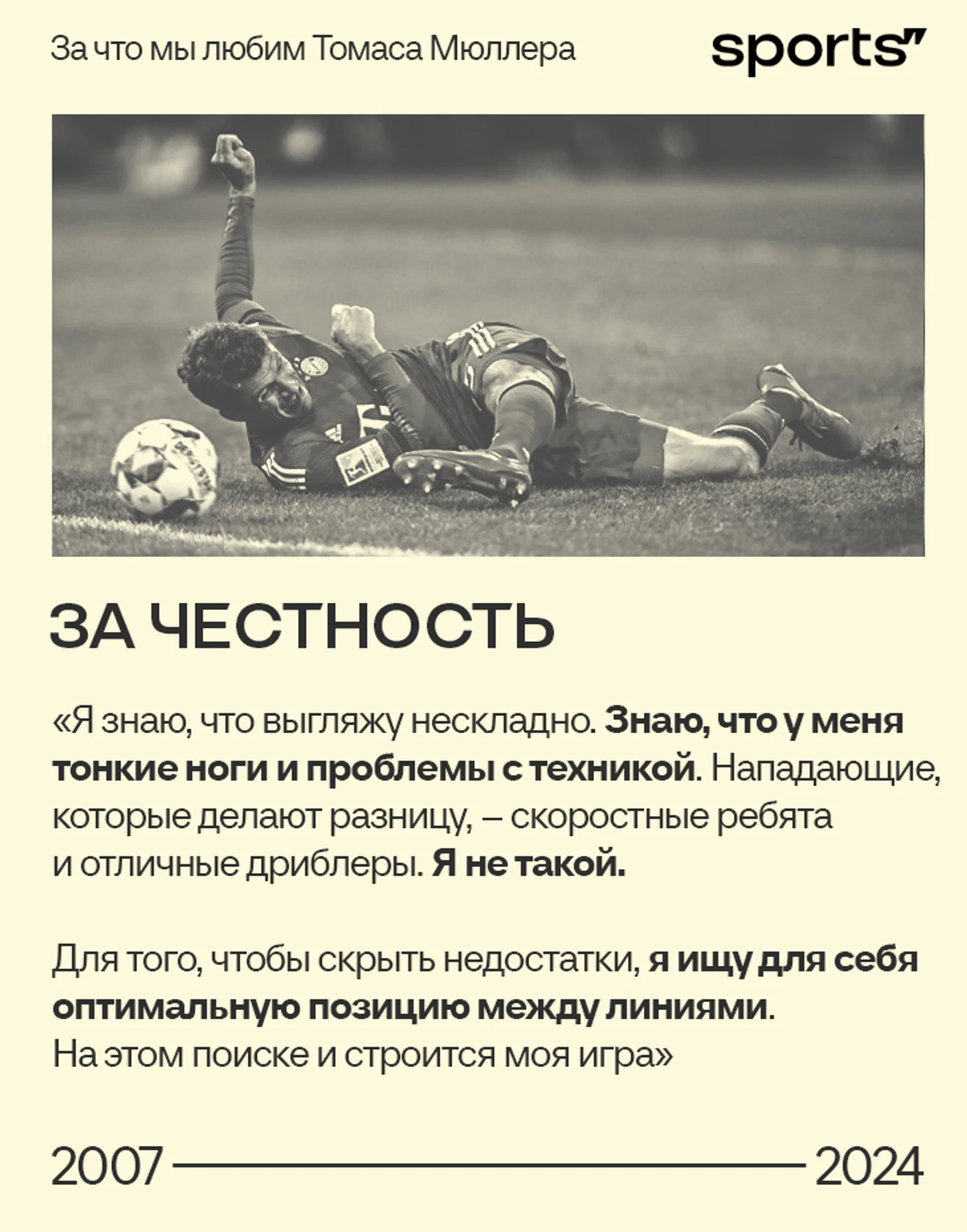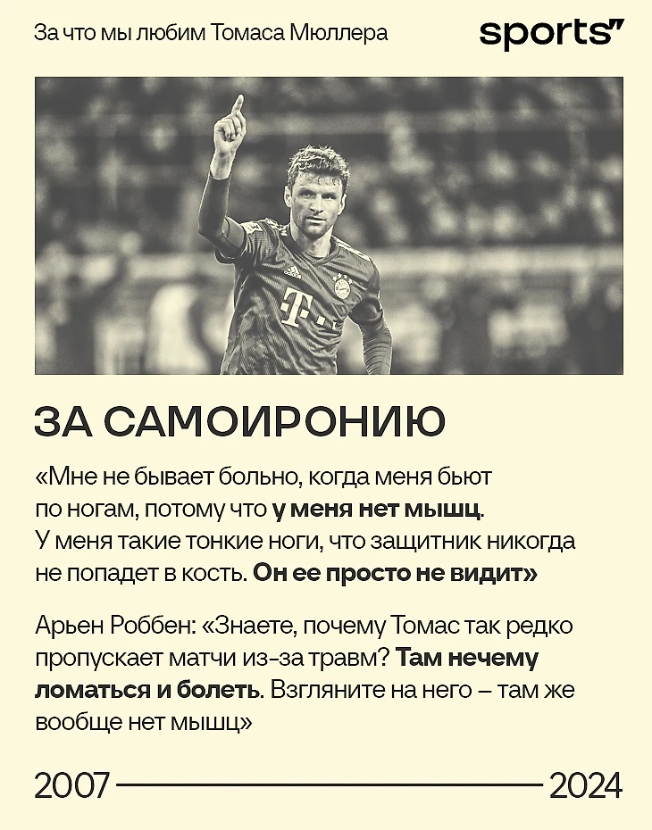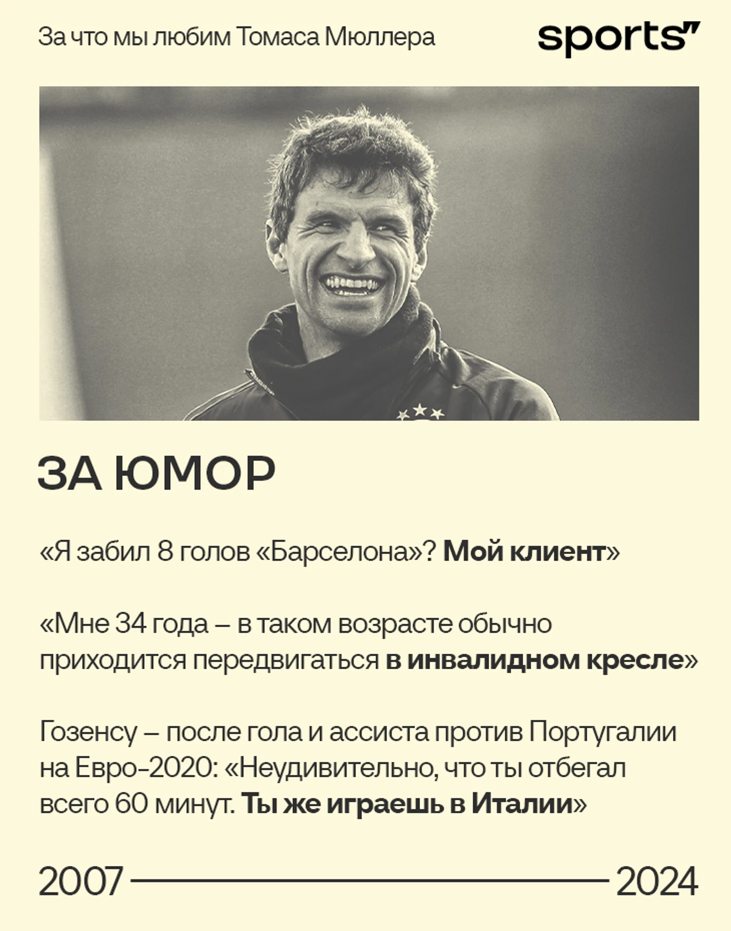 Свойский в доску, с самоиронией, юмором, он никогда не звездился и не скандалил, а пахал и всегда вызывал только симпатию. Радостно, что именно такой игрок стал рекордсменом Баварии.