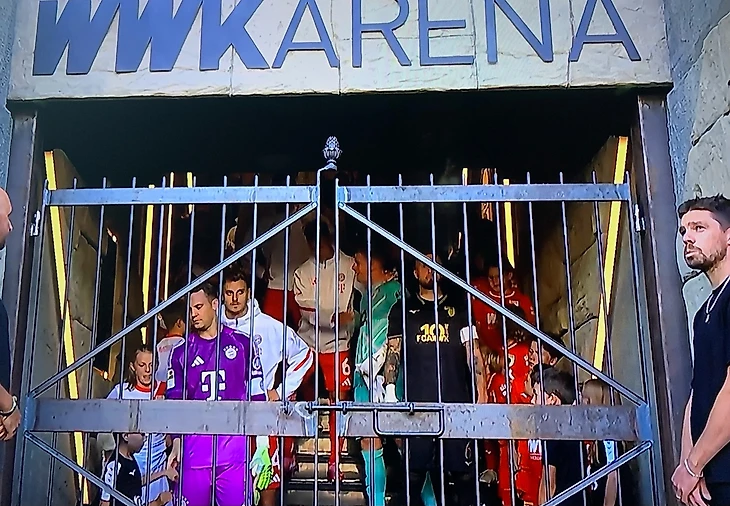 На старте матча «Аугсбург» — «Бавария» меня удивило, что футболисты ожидают своего появления на поле за закрытыми воротами, словно гладиаторы перед выходом на арену Колизея.
