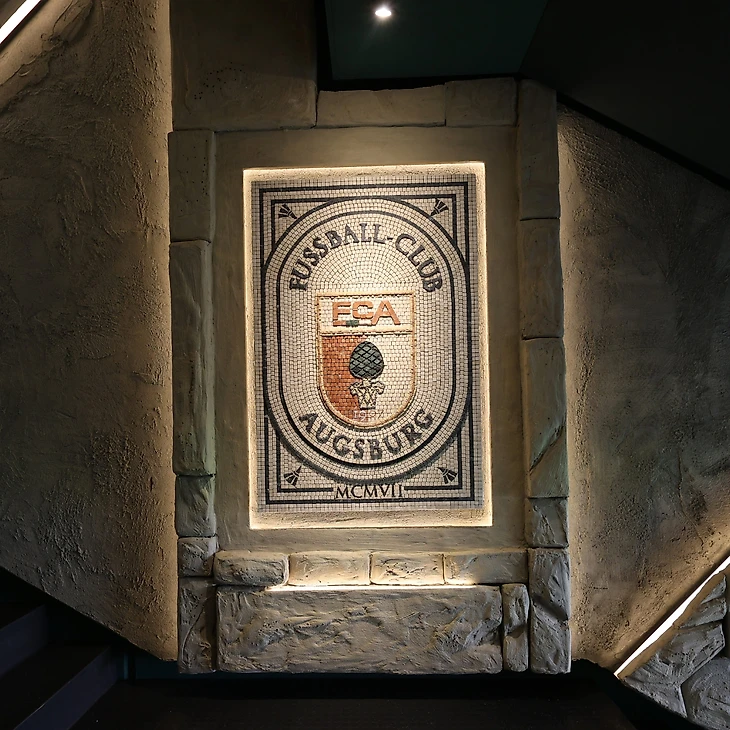 Девиз клуба «Kämpfen und Siegen», расположенный на потолке, переводится как «сражаться и победить». Вполне вписывается в гладиаторский антураж. Если ещё обратить внимание на ромб на закрытых воротах, то можно подумать, что «Аугсбург» и московский «Спартак» — братские клубы.