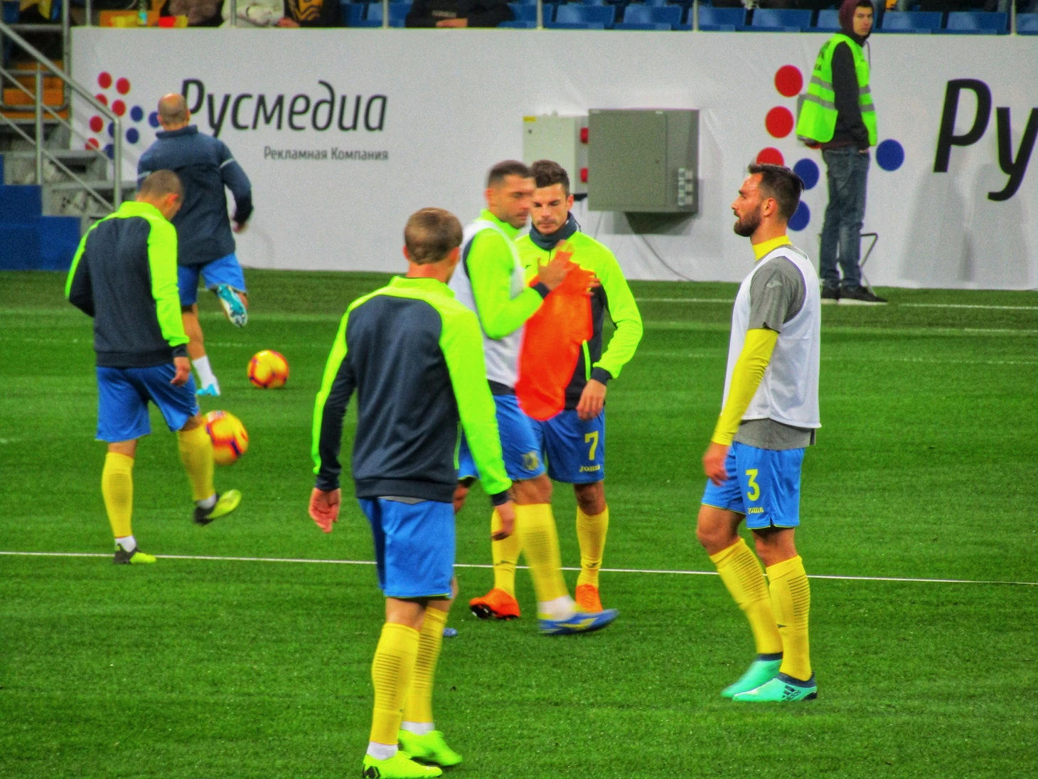 Возможно, показалось, но разминка у Ростова была намного интенсивнее, у них было больше беговых упражнений, в то время, у Анжи больше практической работы: удары по воротам и обычная перепасовка. Отдельные футболисты вообще стояли и по очереди старались попасть в перекладину.