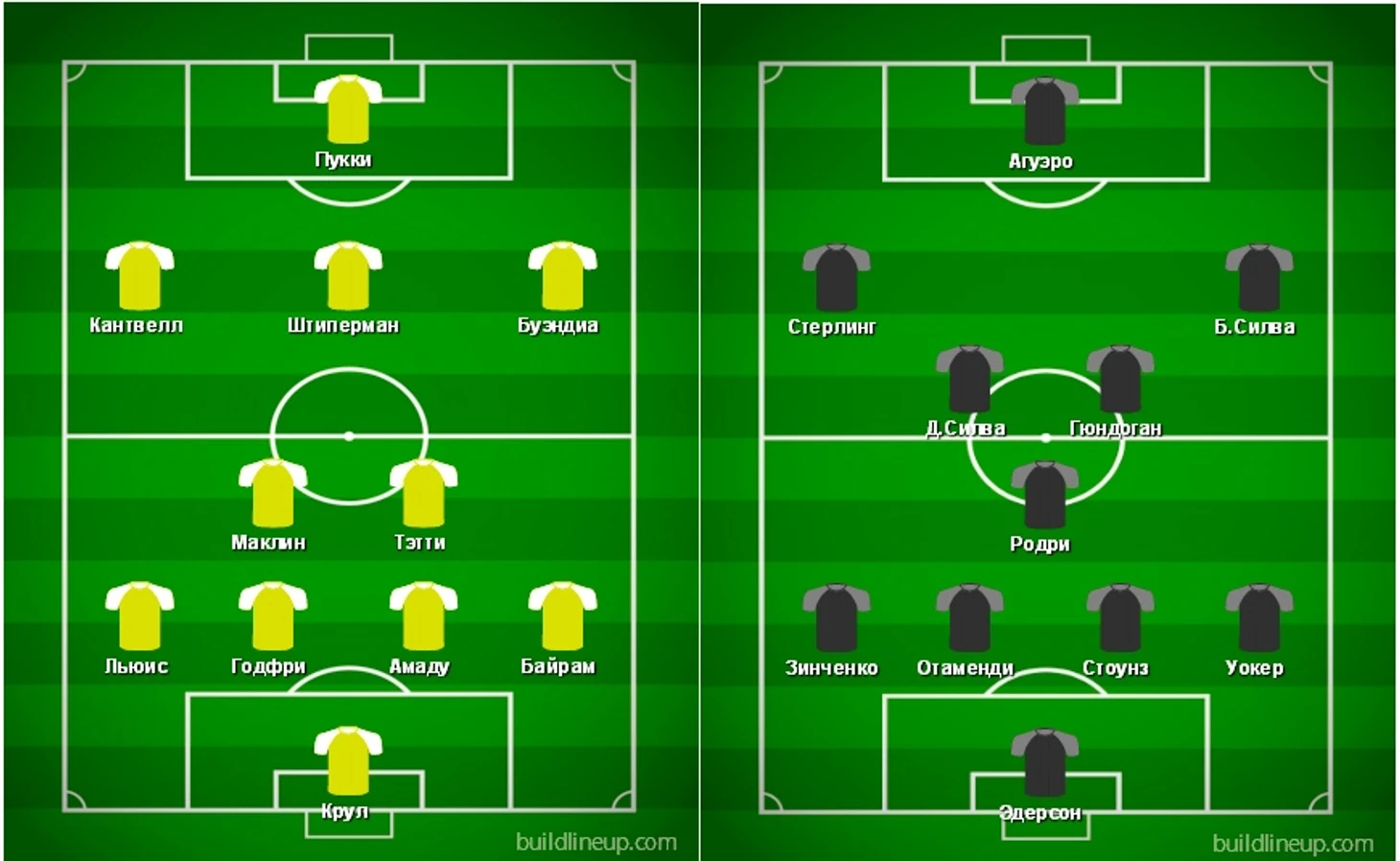 У «Сити» были две замены по сравнению с прошлым матчем: вместо травмированного Лапорта вышел Стоунз, и отсутствовал по неведомой причине Кевин Де Брюйне – играл Гюндоган.