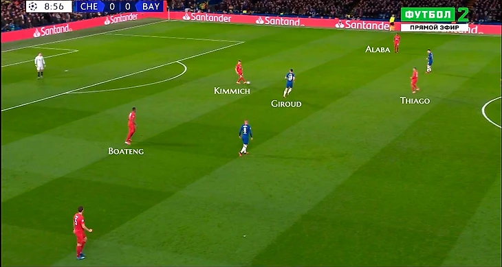 “Бавария” выманивала в прессинг игроков “Челси”, а затем использовала образовавшийся разрыв в линиях в свою пользу. Второй гол пришел после подобного приёма.
