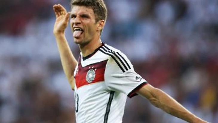 Бразильский ЧМ немцы начали с разгрома Португалии. Счёт был открыт уже на 12-й минуте. Томас Мюллер забил с точки. Перед перерывом Мюллер с паса Тони Крооса забил второй для себя гол в том матче, сделав счёт 3:0 (второй гол немцев забил Матс Хуммельс). На 78-й минуте Мюллер оформил хет-трик, добив мяч в ворота Руя Патрисиу после удара Андре Щюррле.