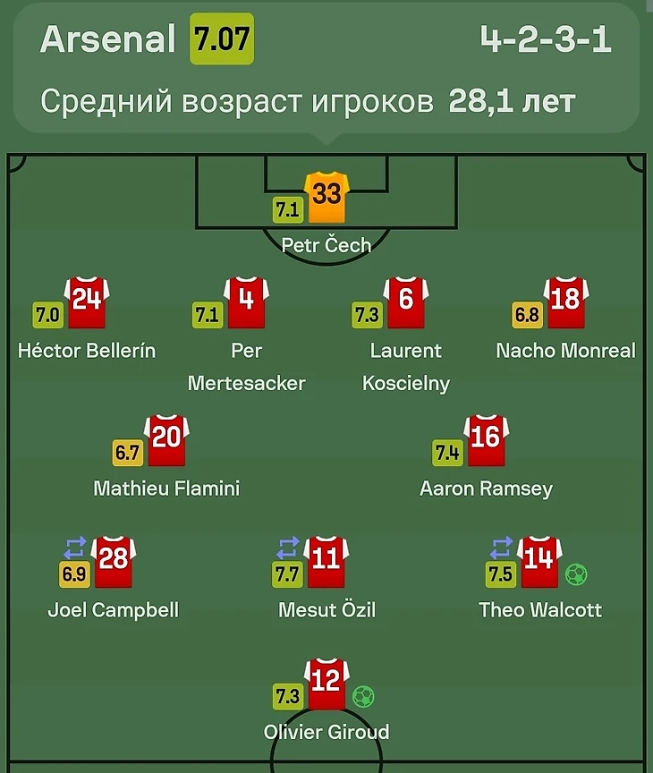 В 17-м туре команды зарубились на «Эмирейтс». Арсен Венгер и Мануэль Пеллегрини выкатили следующие составы…