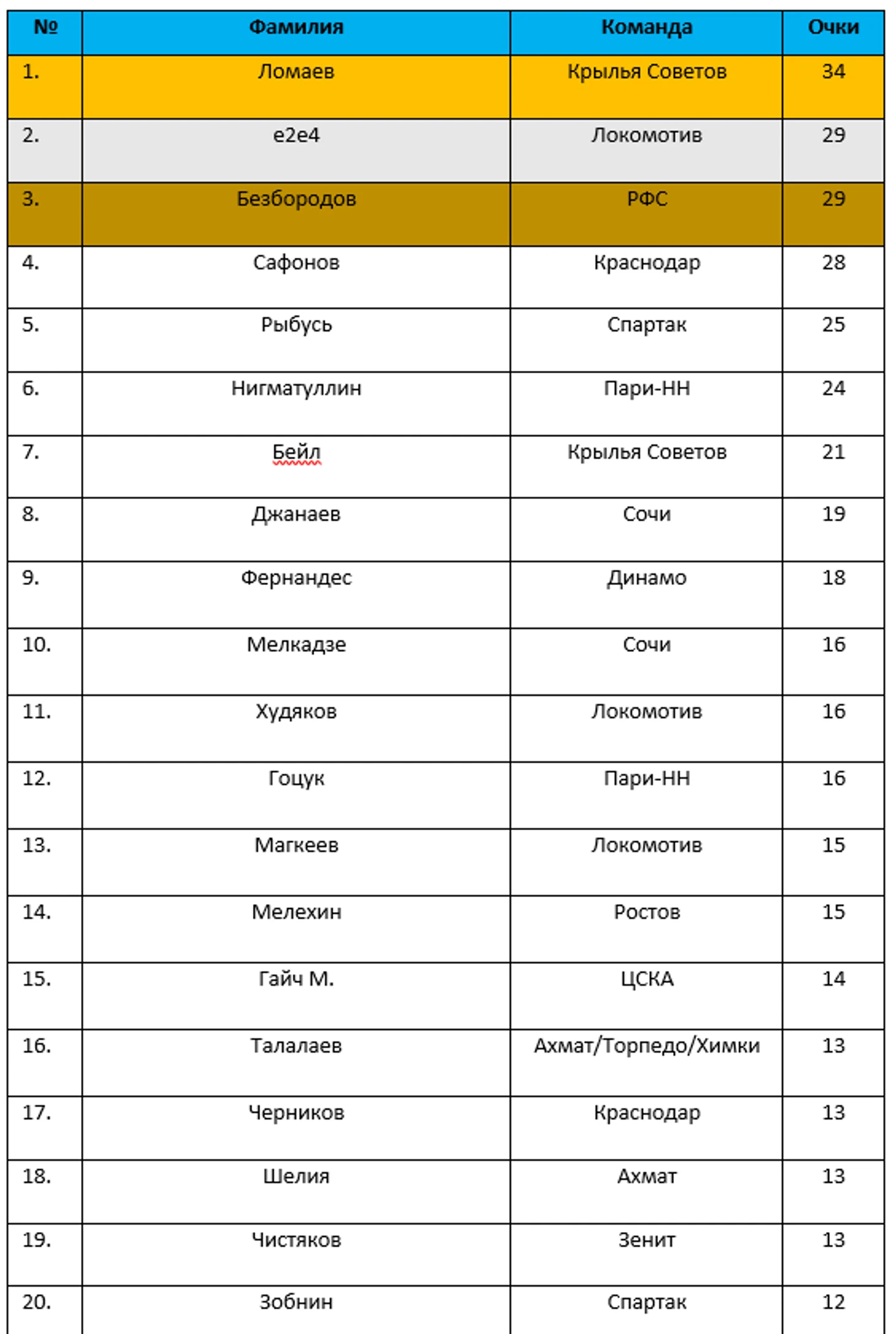 Золото тура уверенно забирает соавтор победы Зенита на Крыльями - Гленн Бейл, который за первый тайм сделал практический все, чтобы его команда попала в тяжелейшее положение. Удаление, за вторую желтую в первом тайме + привезенный пенальти и защитник получает 11 баллов трупДжи.