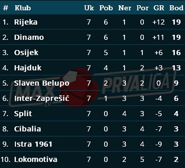 Риека, победив в домашнем матче Славен Белупо, сохраняет за собой первую строчку в таблице. Для клуба из Истрии, в преддверии важнейшего матча в сезоне против Динамо из Загреба, выход к той игре (напомним, она состоится в рамках 9-го тура ХНЛ - 17 сентября) в ранге, пусть и номинального, но лидера - очень важен.