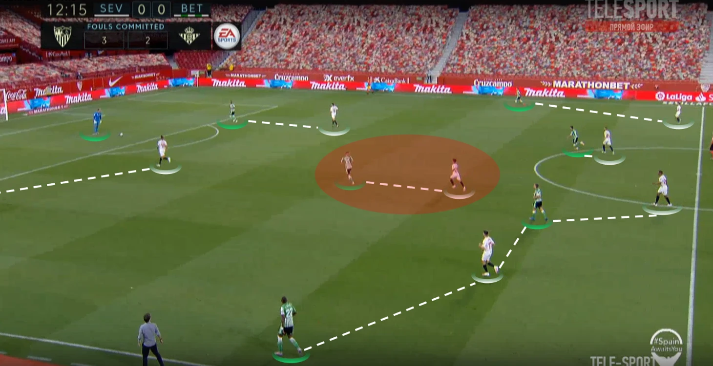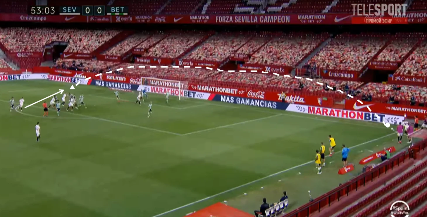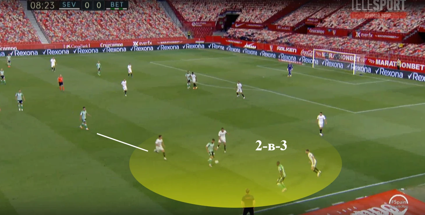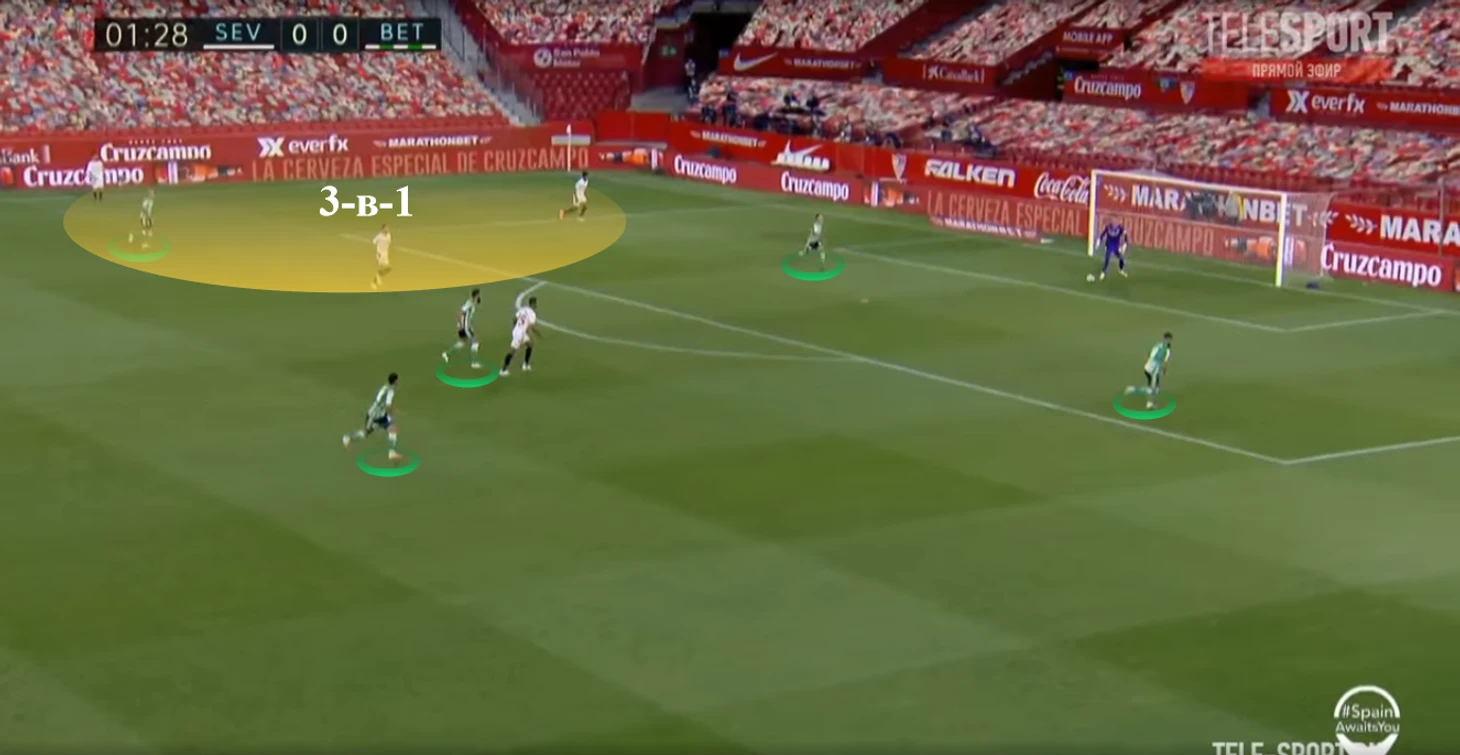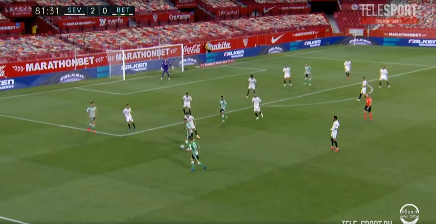 Да-да, в прошлом тексте мы отмечали сильную игру Эмерсона и Морено, набравших 9 ассистов на двоих за сезон, но в этом матче фланги при атаках «Бетиса» всё равно оставались за «Севильей».