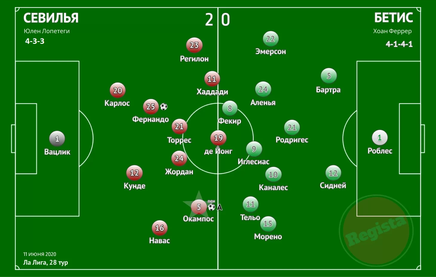 Стоит отметить, что в конце второго тайма Руби всё же освежил левый фланг (Педраса появился вместо Морено), а атаки «Бетиса» всё чаще проходили через правый – иногда появлялись потенциально опасные ситуации, но Лопетеги достаточно быстро решил вопросы: выпустив Эскудеро и Васкеса вместо Регилона и Торреса соответственно.
