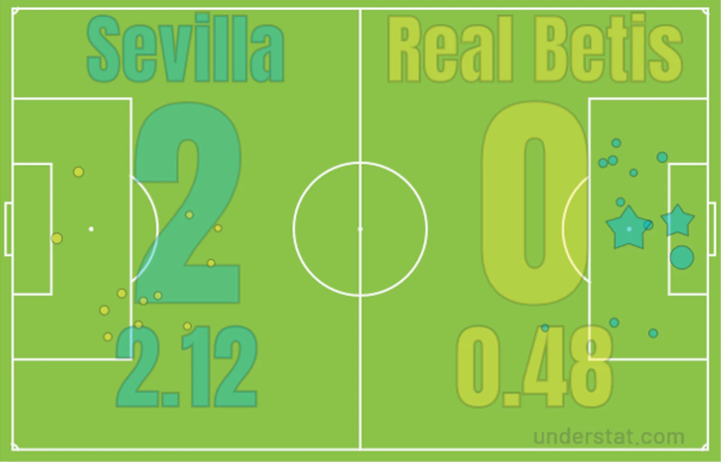 Карта ударов как свидетельство всего ранее сказанного: три биг-шанса, и все у «Севильи» – все со стандартов. С игры было минимум остроты