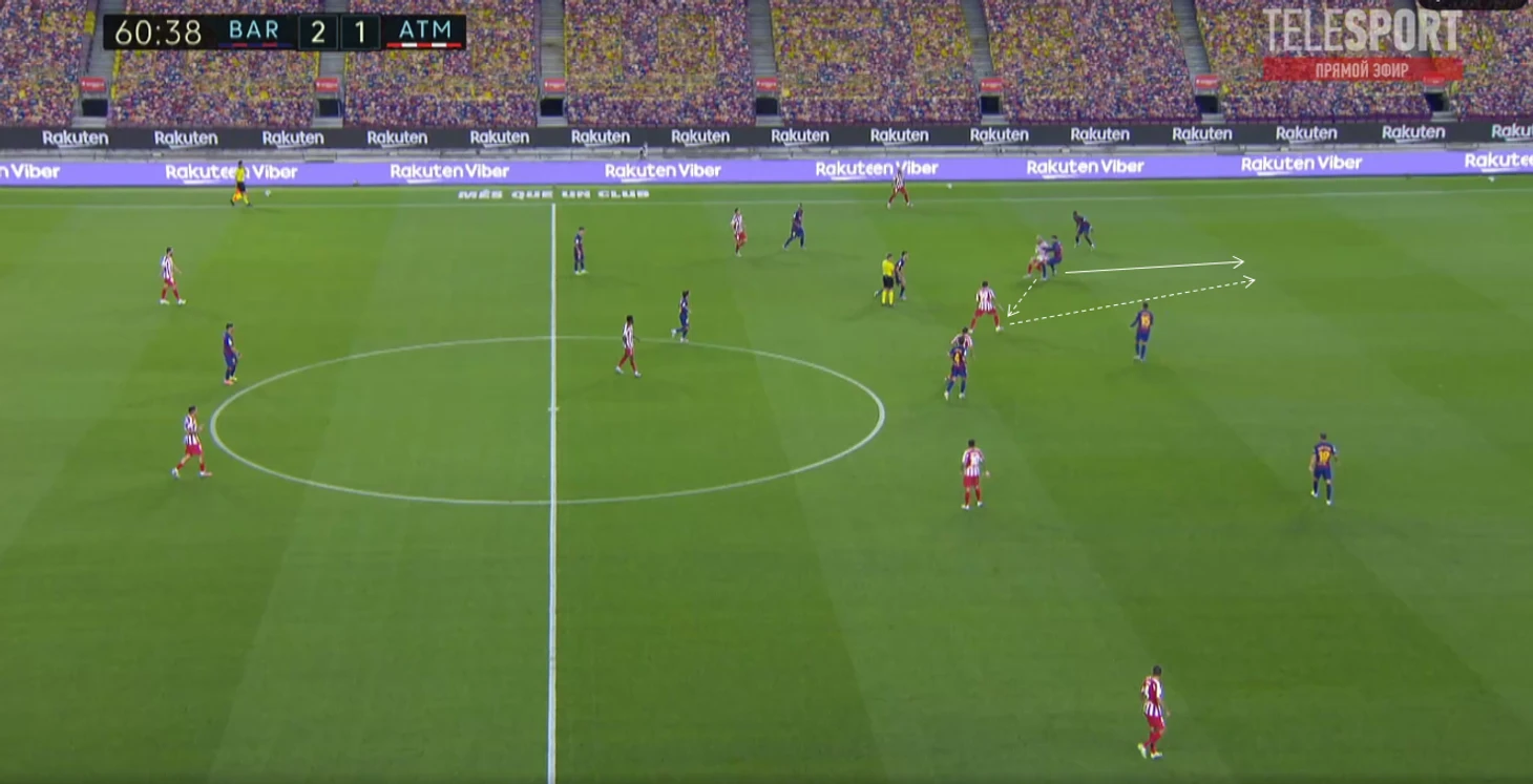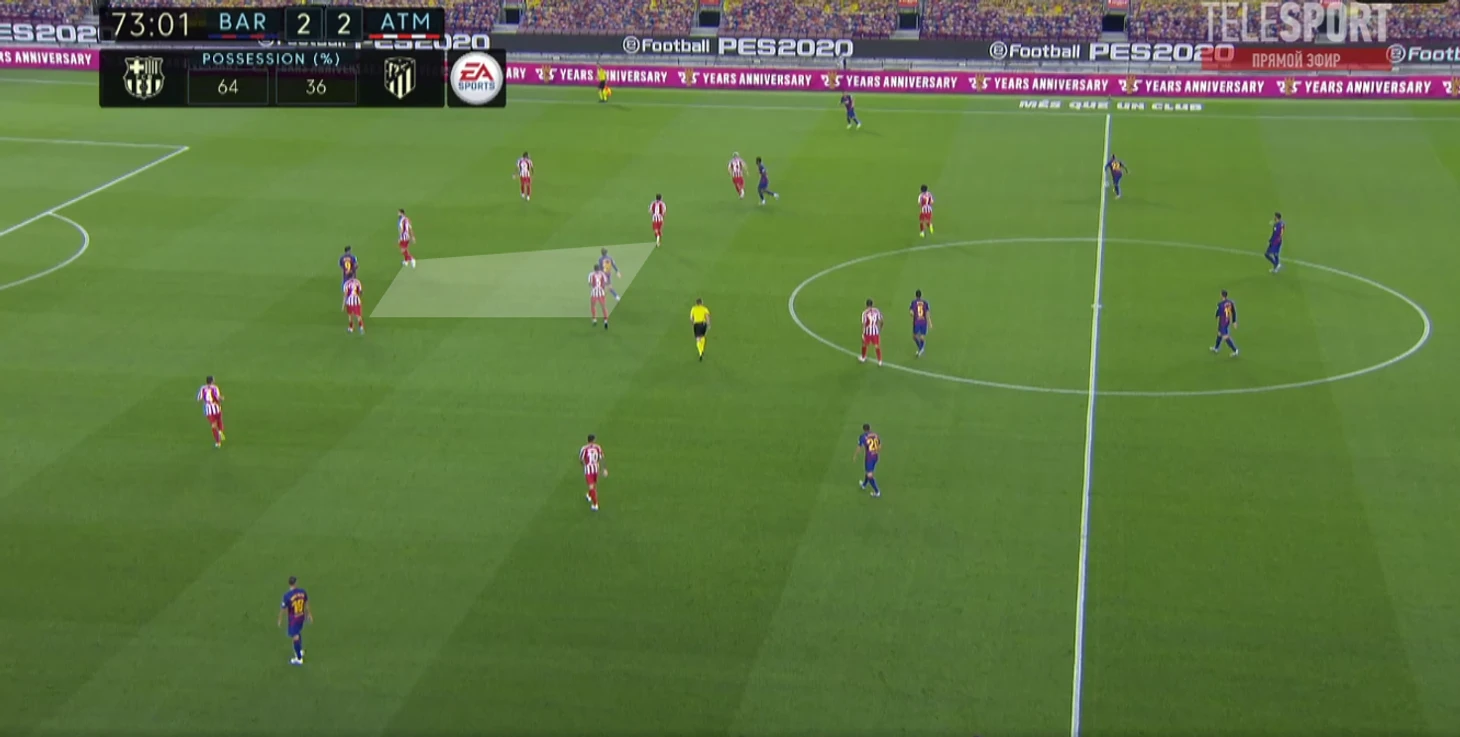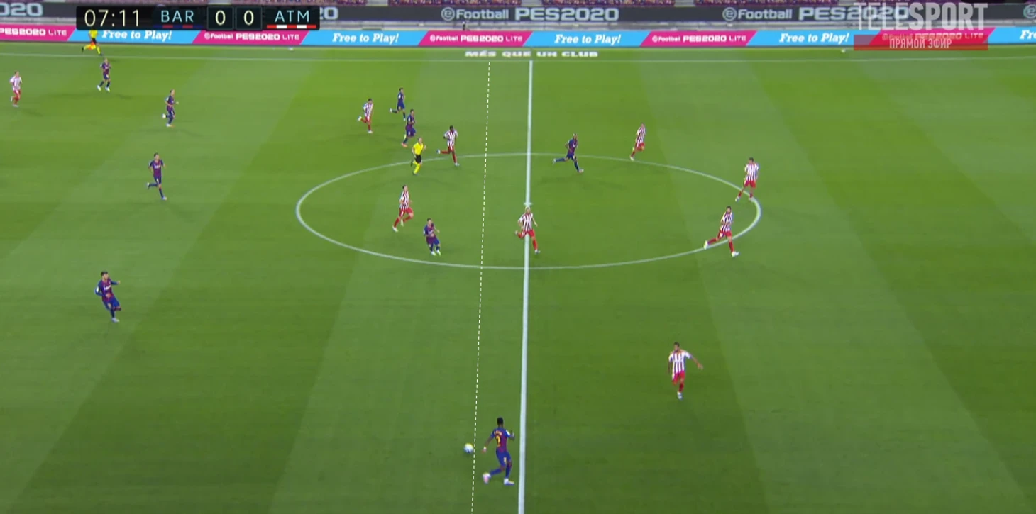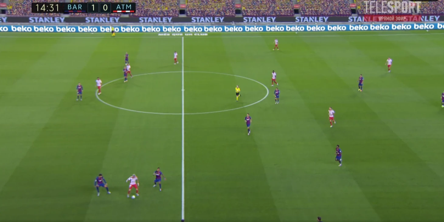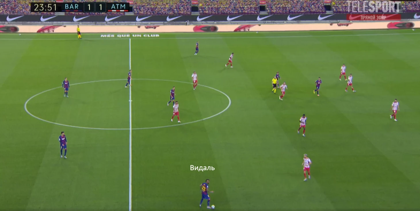 «Атлетико» славится своими фланговыми ловушками, «Барса» выглядела не очень убедительно против них: да, получалось выходить (зачастую при помощи переводов на дальний фланг), но это не приводило ровным счётом ни к чему.