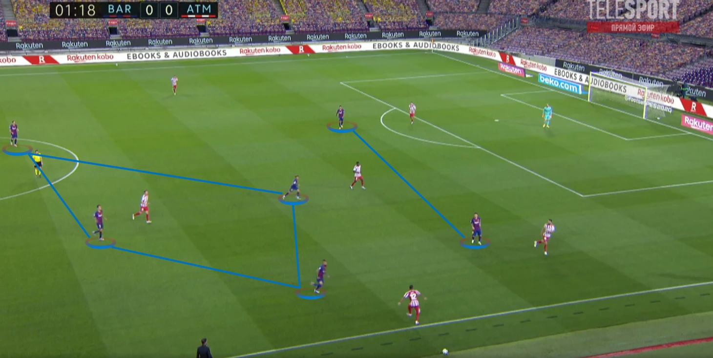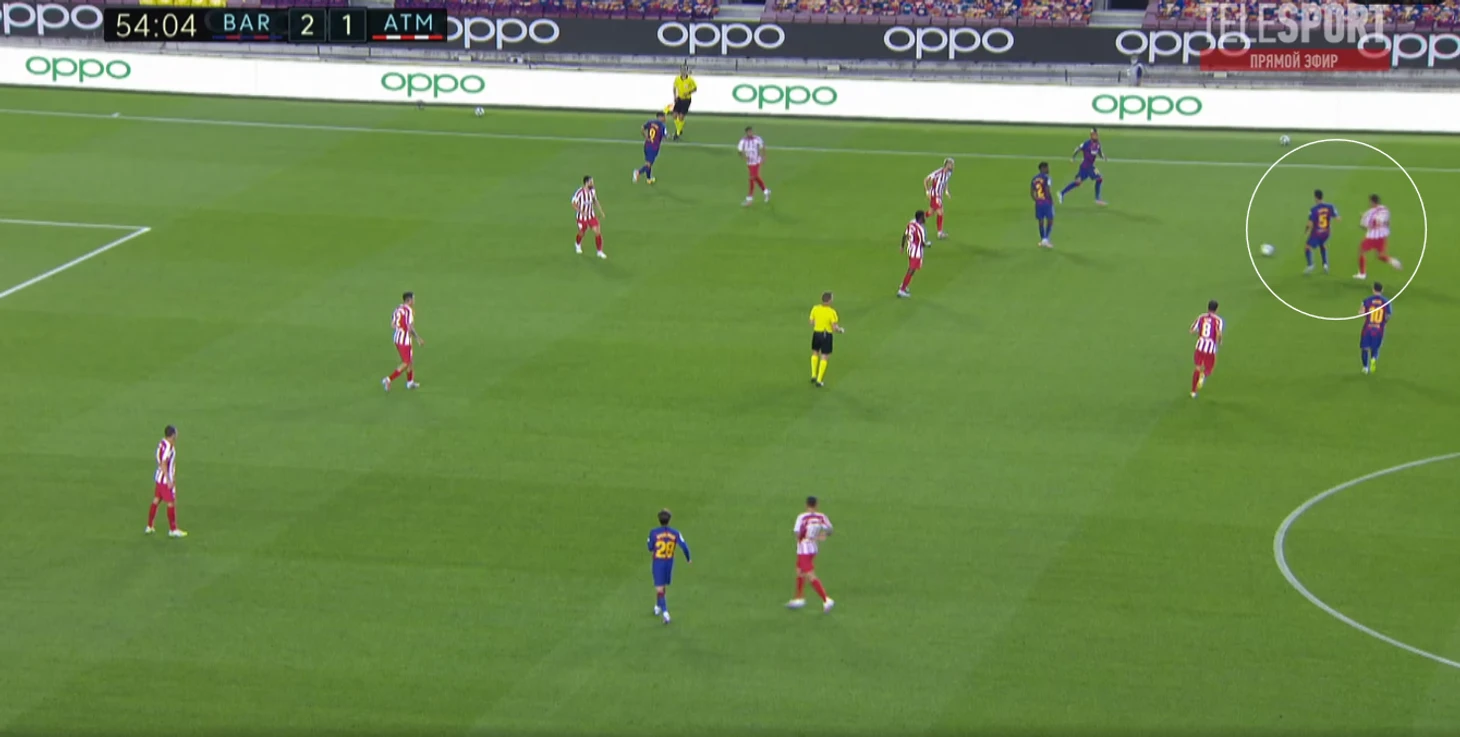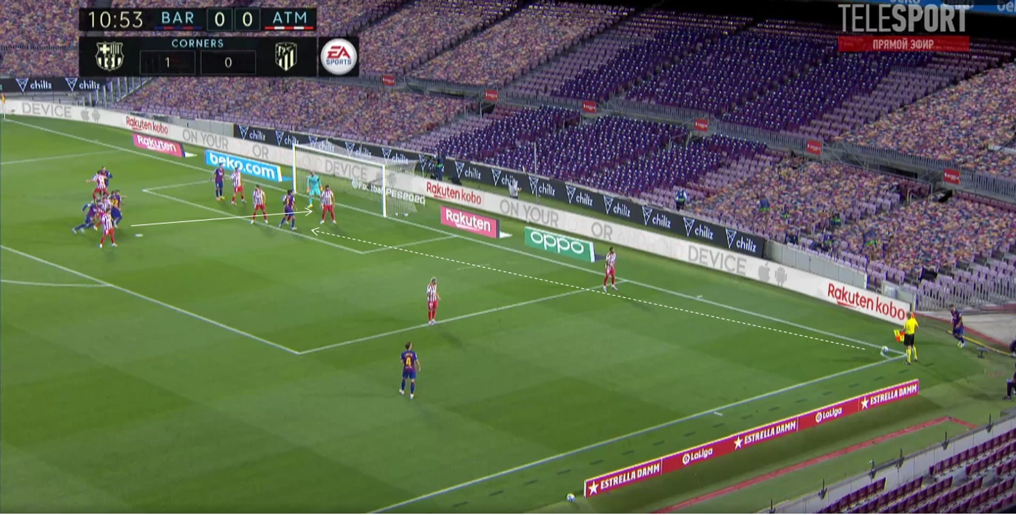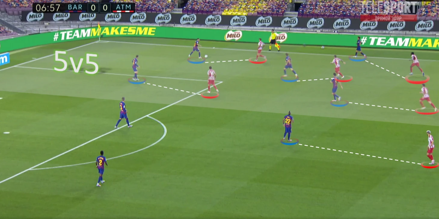 «Атлетико» славится своими фланговыми ловушками, «Барса» выглядела не очень убедительно против них: да, получалось выходить (зачастую при помощи переводов на дальний фланг), но это не приводило ровным счётом ни к чему.