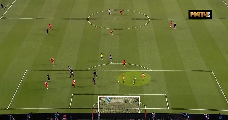 Другой интересный момент: выход Коутиньо направо, что в целом не дает ему пользоваться классическими смещениями в центр и ударами с правой.