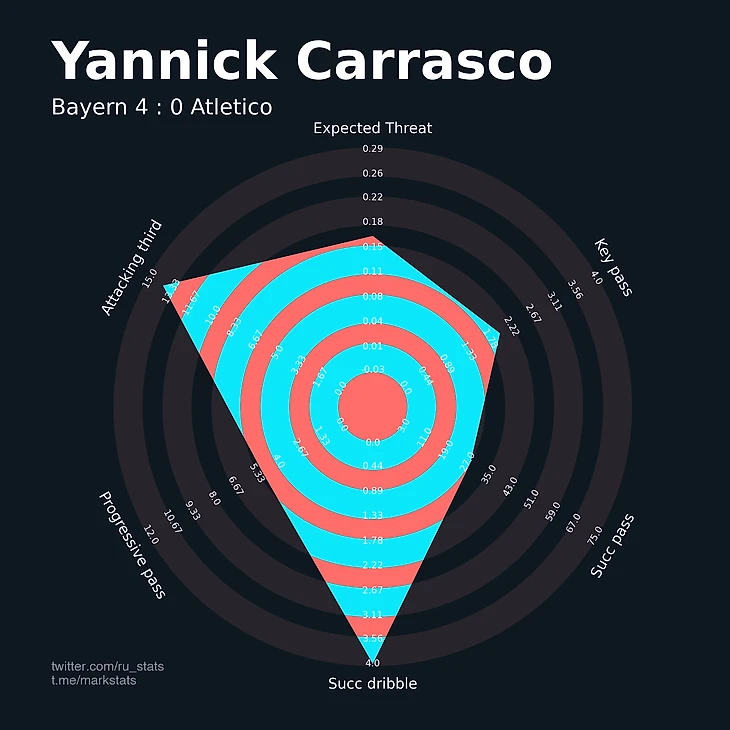 Янник Феррейра Карраско был достаточно сильно вовлечён в игру и неплохо обострял, являлся важной фигурой в этих комбинациях через левый фланг, которые позволяли доводить мяч до финальной трети и штрафной «Баварии»