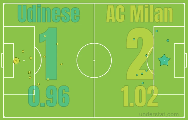 Изначально вывеска кажется вполне будничной: лидер чемпионата играет в гостях с одним из аутсайдеров, который в пяти матчах набрал лишь три очка. Но если мы обратимся к более продвинутым цифрам, то картина станет значительно интереснее: дело в том, что перед этим туром "Удинезе" занимал второе место по ожидаемым очкам (10,71). Стоит оговориться, что по такой дистанции рано делать какие-то выводы (не подразумевается, что "Милан" приехал к одной из действительно лучших команд Серии А), но нужно отметить контраст на фоне остальных команд из нижней части таблицы и в сравнении с реальными очками относительно дистанции (+7,71 за пять матчей – это аномально много. Кроме того, в подавляющем большинстве проигранных матчей "Удинезе" действительно заслуживал положительных результатов, картина редко сводилась к тому, что команда быстро пропускает, а потом всю оставшуюся часть матча пытается отыграться. Можно, отыгрываясь с 0:2, создать моментов на три ожидаемых гола и забить всего один, но уместно ли говорить, что команда заслуживала победы, учитывая, что при 2:2 рисунок игры мог бы поменяться, и соперник, например, снова начинает контролировать территорию и атаковать. Вряд ли получится и дальше создавать моменты с такой спецификой – после долгих позиционных атак – и регулярностью. В этом смысле проигранные матчи против "Ромы", "Вероны" и "Специи" очень похожи: у "Удинезе" были явные моменты как до победного гола соперника, так и после, то есть футболисты заслуживали как забивать первыми, так и отыгрываться, но реализация постоянно подводила. С "Фиорентиной" всё было немного иначе – основная порция моментов пришлась на отрезок, когда "фиалки" уже вели 3:1, больше походит на более спорный тип невезения ("3 xG при 0:2").